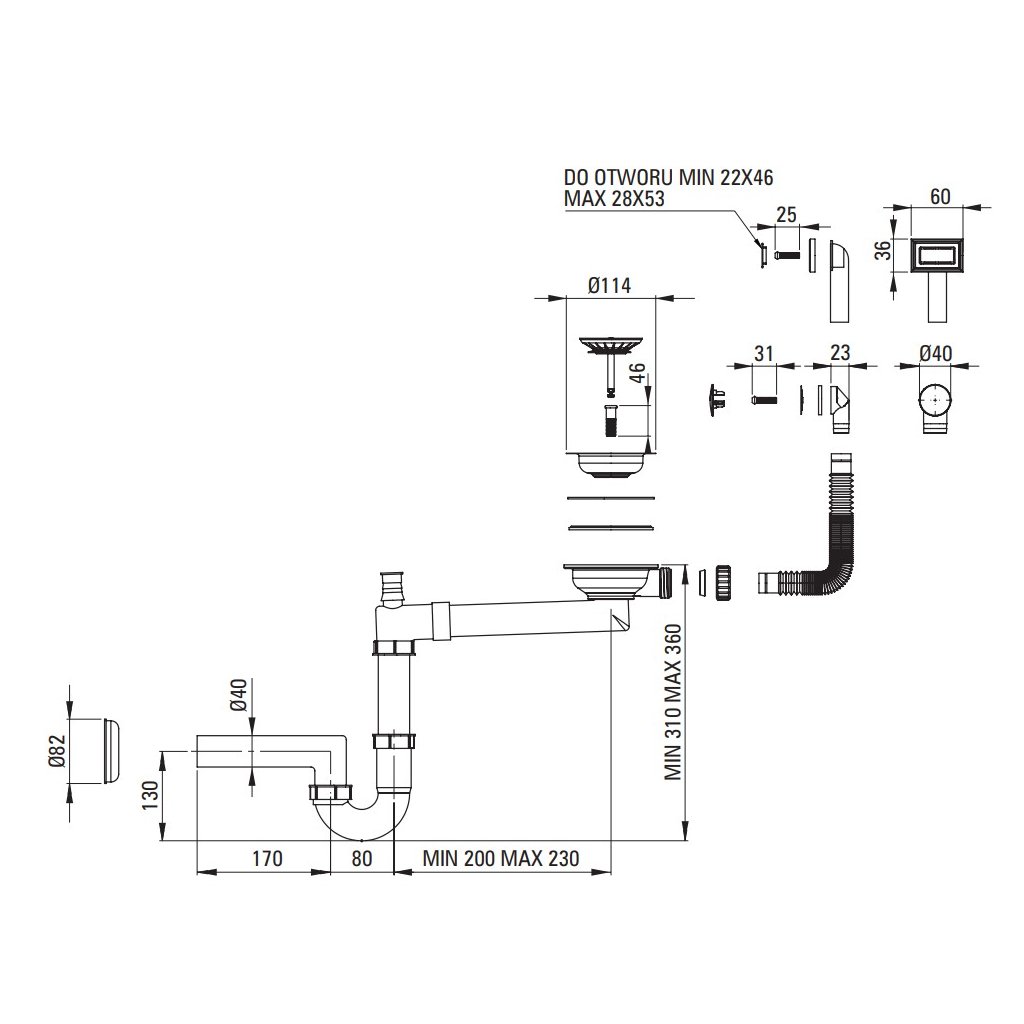 Deante Space-Saver, odpadní souprava pro 1-komorový granitový dřez, černá, DEA-ZXY_N949