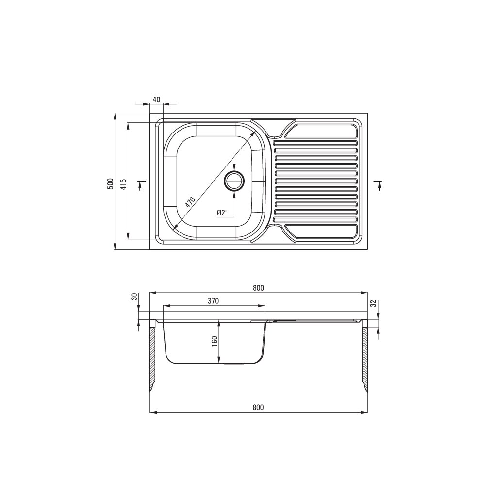 - Typ: nerezový dřez na desku 1-komorový + sifon