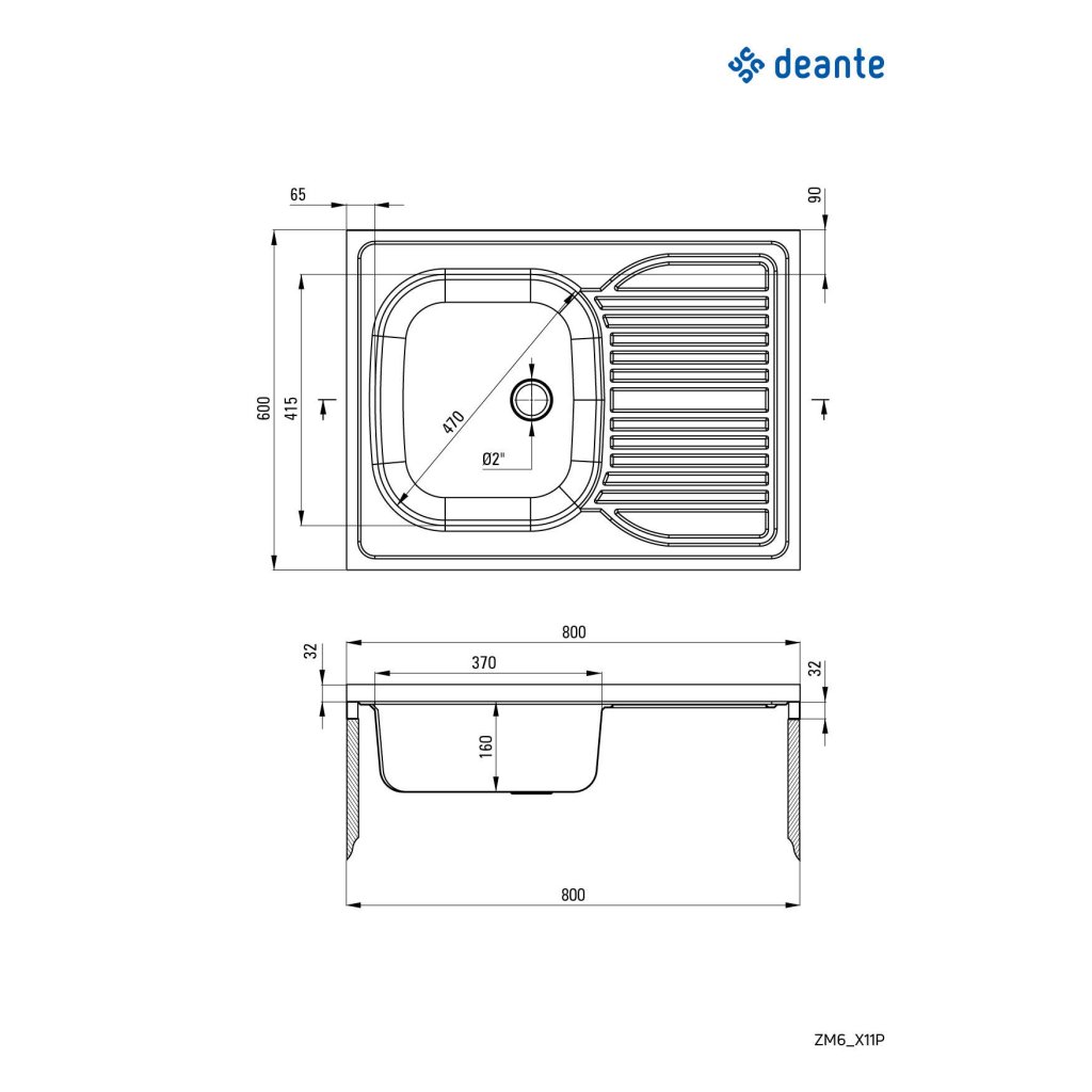 Deante Tango, nerezový dřez na desku 1-komorový, pravý, Z/O 800x600x160 2" + sifon, vzor dekor s lištami, ZM6_311P