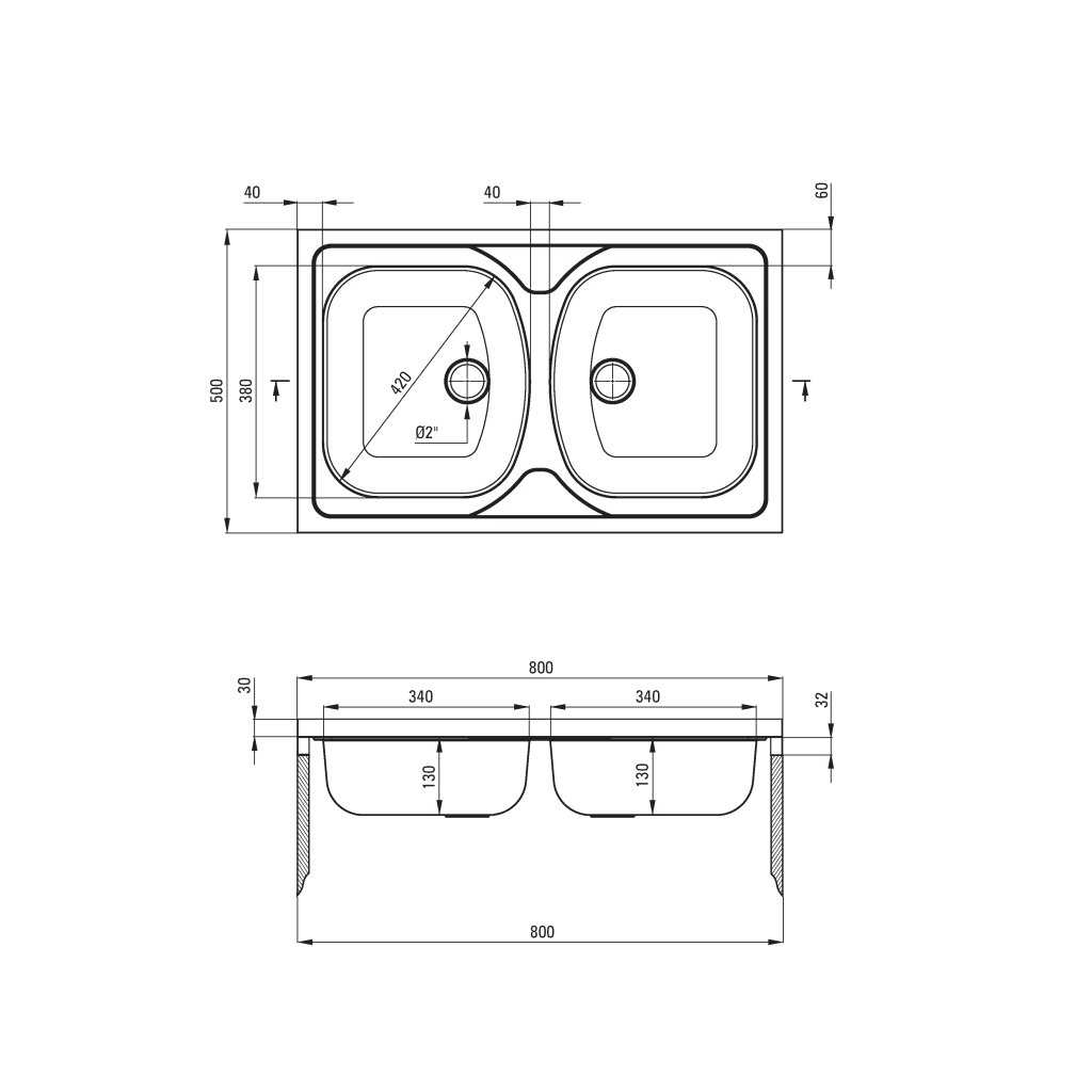 - Typ: nerezový dřez na desku 2-komorový + sifon