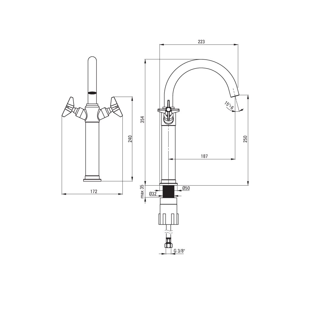 - Instalační závit: 3/8''
