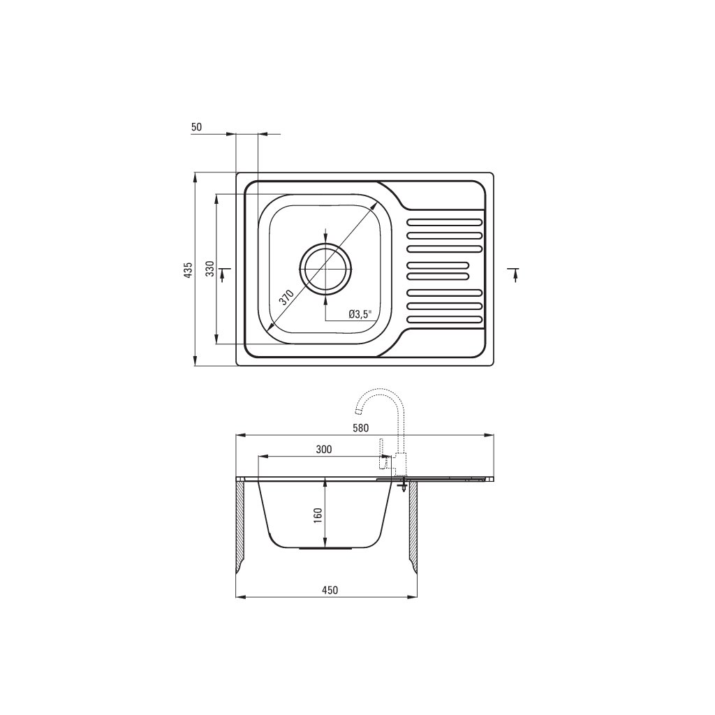 Nerezový dřez XYLO 580 x 435 x 160 mm