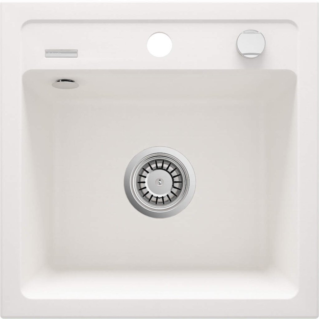 Deante Zorba, granitový dřez 440x440x184 mm B/O, 3,5" + prostorově úsporný sifon, 1-komorový, bílá, ZQZ_A103