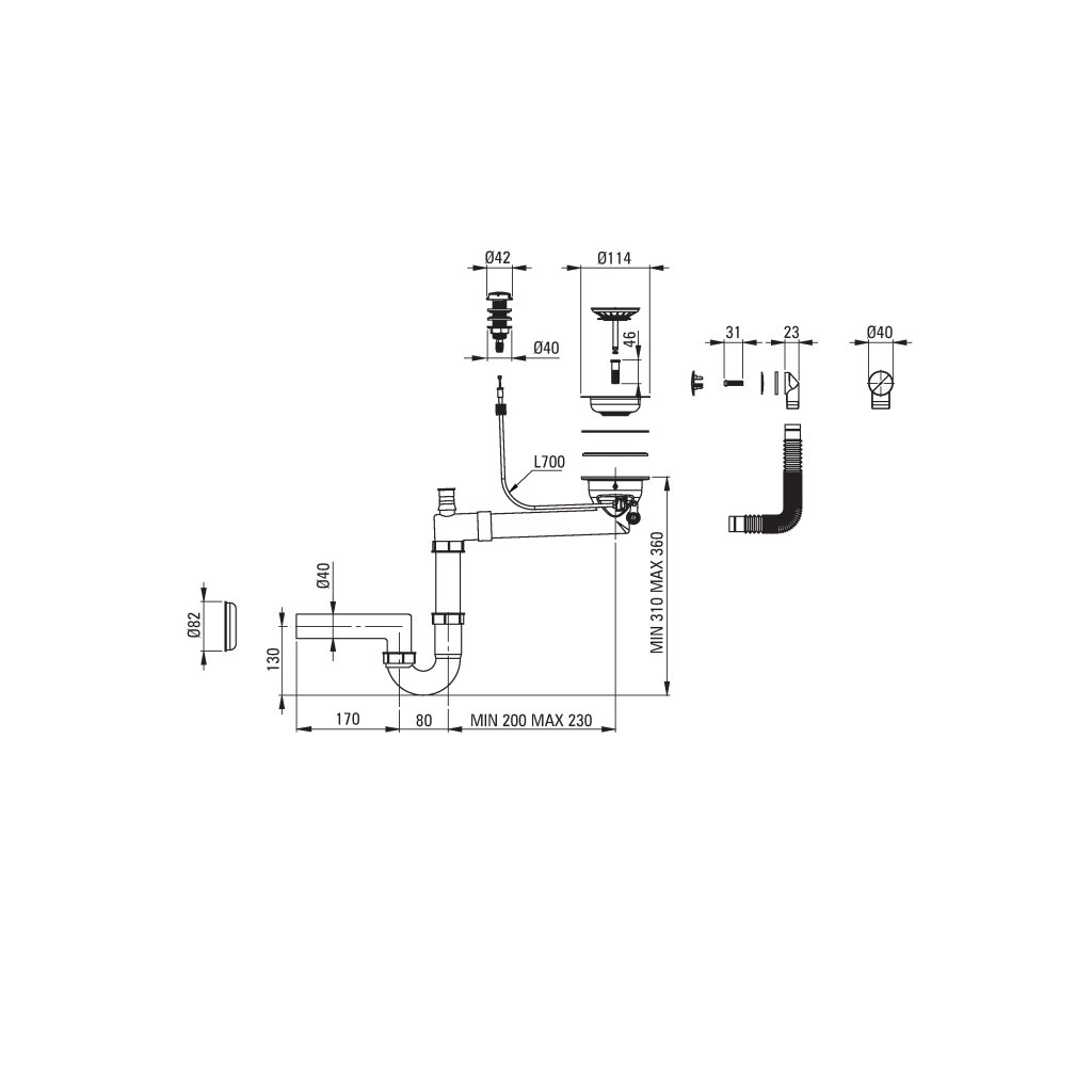 - Součástí je sifon s automatickým zavíráním odtoku