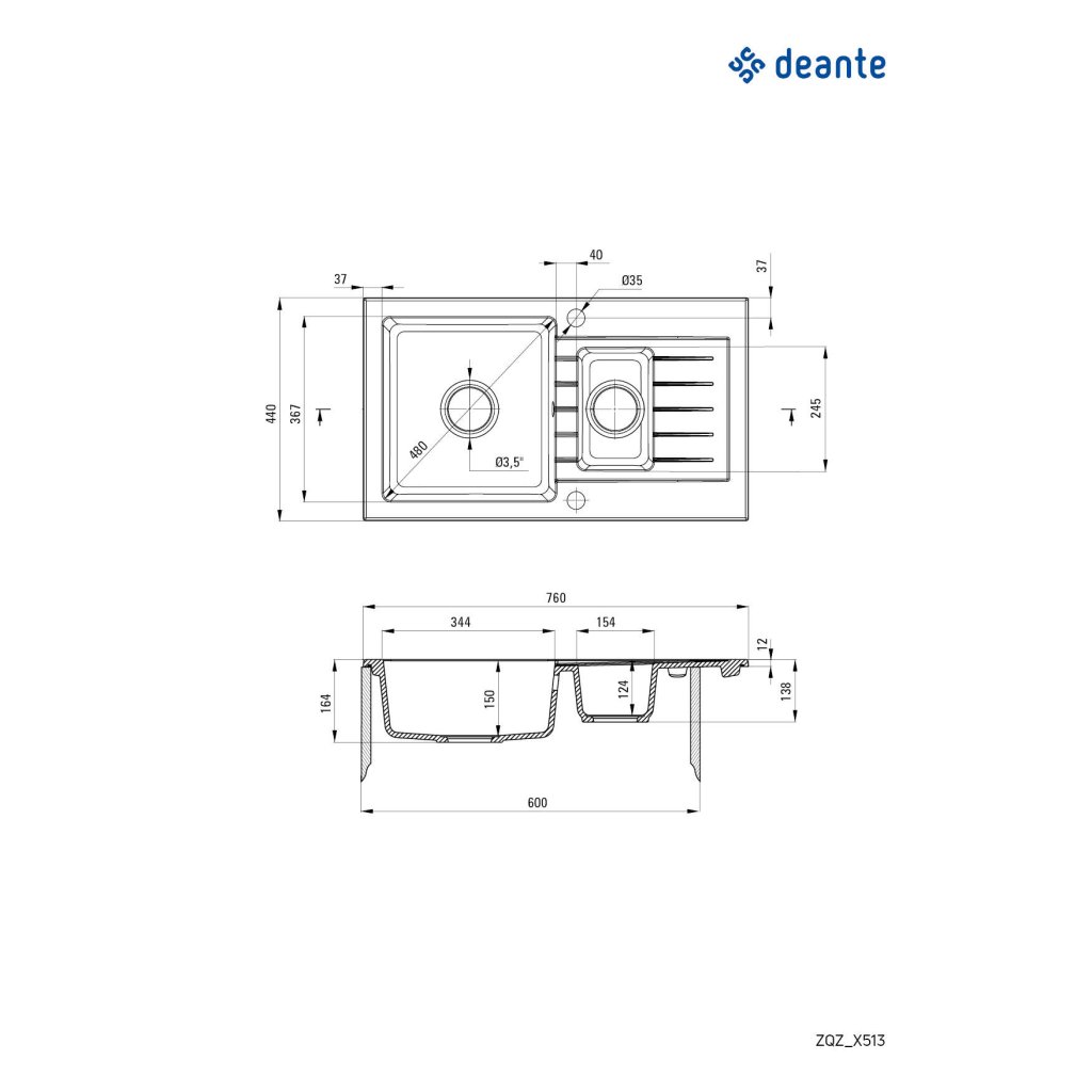 Deante Zorba, granitový dřez 760x440x164 mm Z/O, 3,5" + prostorově úsporný sifon, 1,5-komorový, bílá, ZQZ_A513