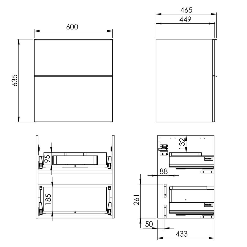 - skříňka připravená k zavěšení pod desku nebo umyvadlo