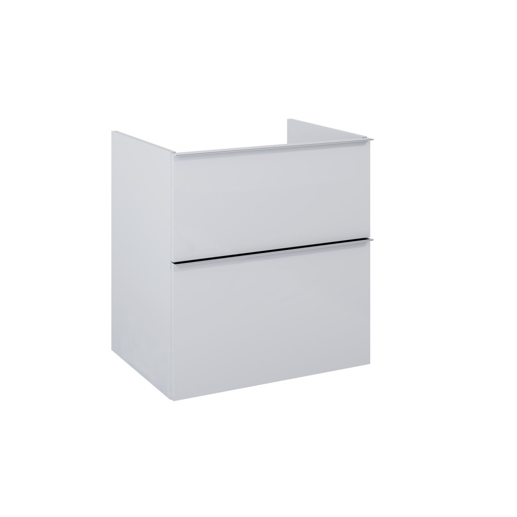 Skříňka pro umyvadla na desku ze série Look o šířce 60 cm, bez vrchní části, 2 zásuvky s tichou samozavírací funkcí a úplným vysouváním. Skříňka vyrobená z materiálů odolných vůči vlhkosti, přední část a tělo lakované matnou šedou barvou. Výrobek funguje jako umyvadlová skříňka pomocí pracovní desky a sifonu, který šetří místo.