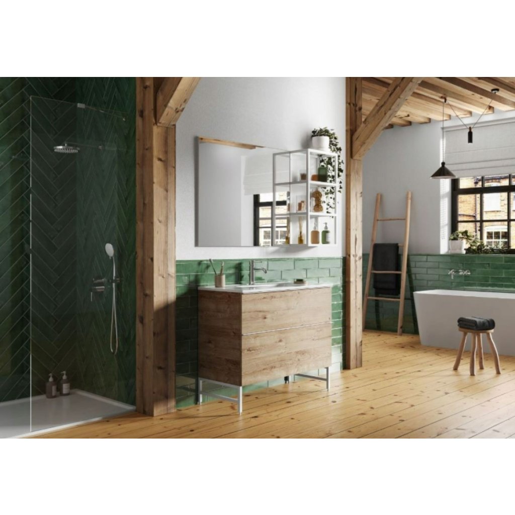 - Moderní ocelová základna plní funkci nohou, poskytuje fenomenální vizuální efekt a umožňuje instalaci skříněk na lehké sádrokartonové konstrukce, které působí jako nosný rám