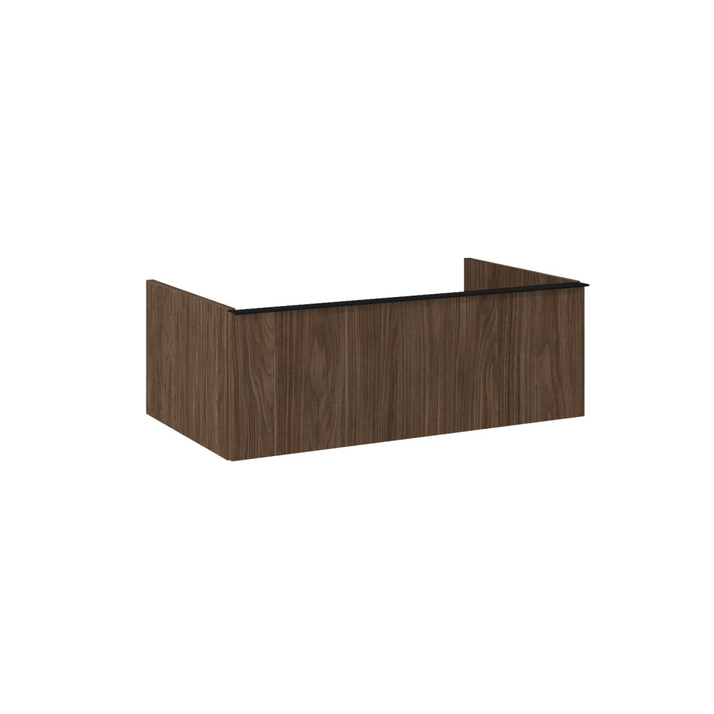 Skříňka série Look o šířce 80 cm, bez vrchní části, 1 zásuvka s tichou samozavírací funkcí a úplným vysouváním. Skříňka je vyrobena z materiálů odolných vůči vlhkosti, přední část a tělo lakované v barvě ořech Lincoln. Výrobek je určen pro funkci umyvadlové skříňky pomocí pracovní desky, umyvadla na desku a sifonu, který šetří místo.