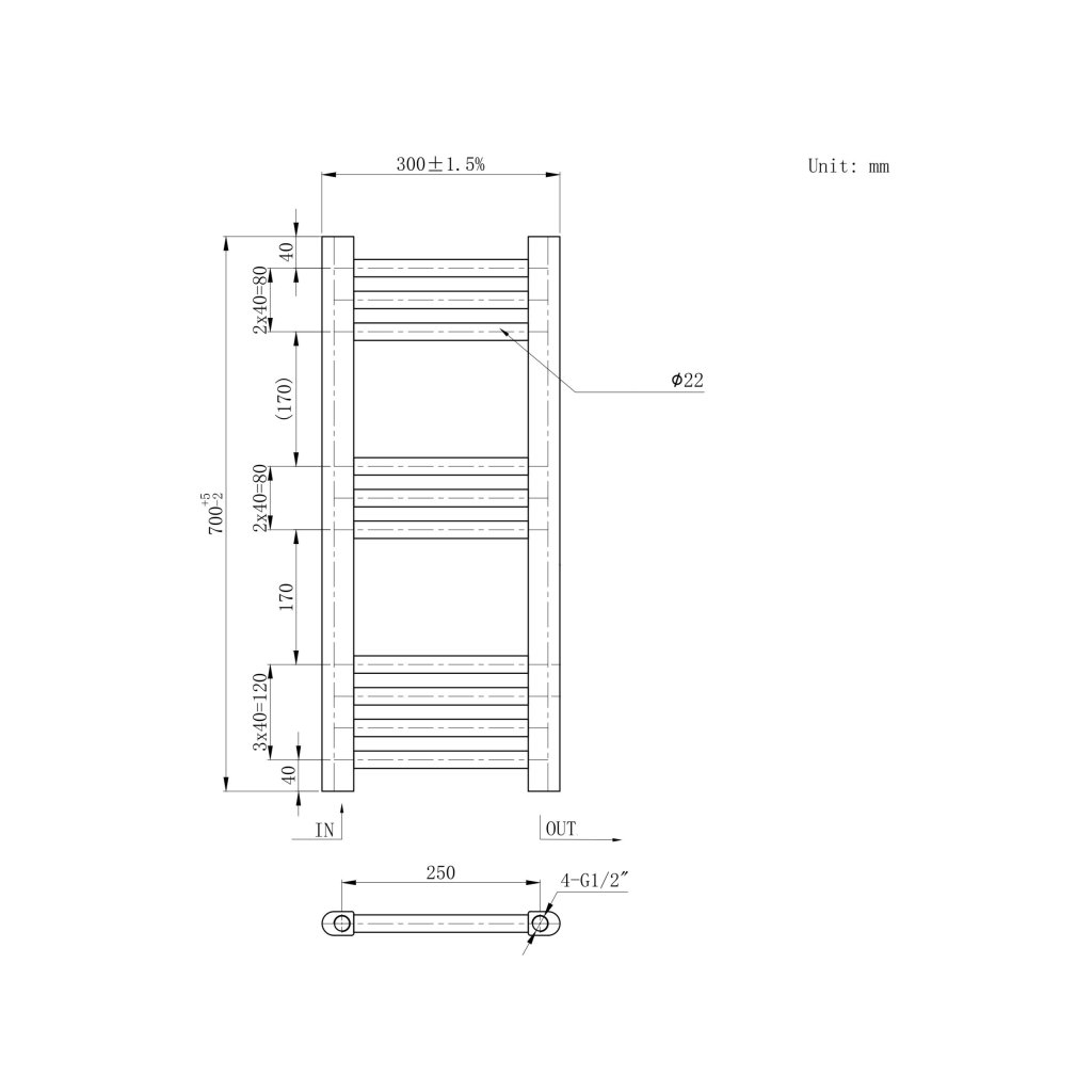- Rozteč připojení: 250 mm