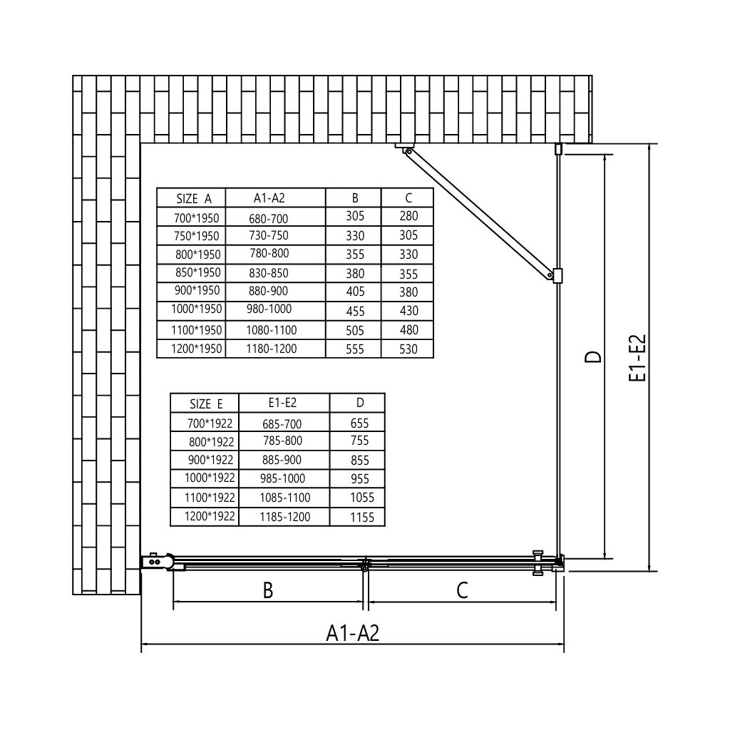 - Rozměr strany dveří: 1200 mm