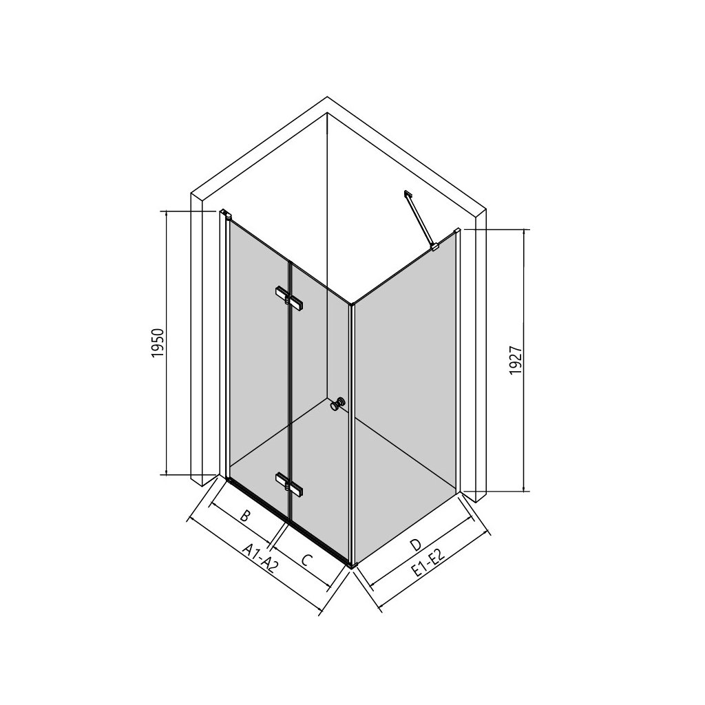 - Rozměr strany pevné skleněné stěny: 800 mm
