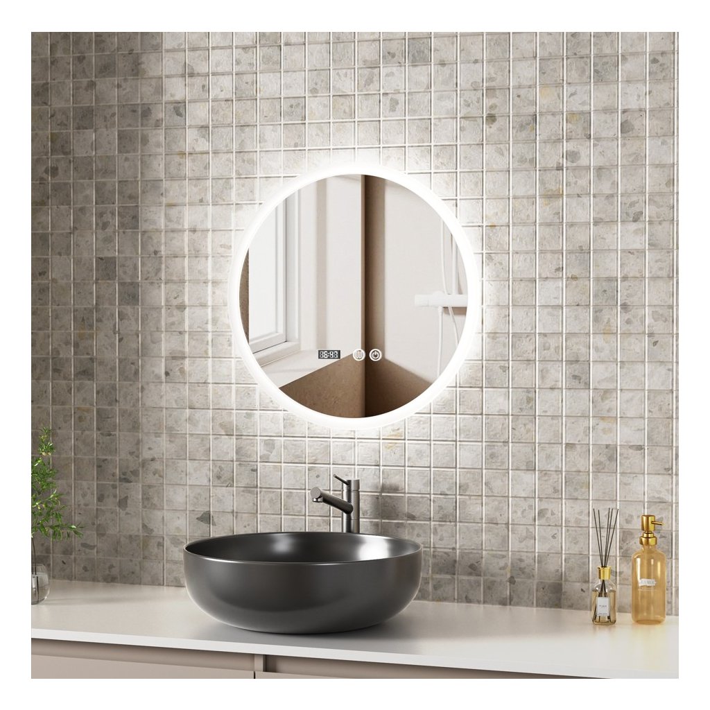 Erga Deam, kulaté LED zrcadlo 50cm, 3 barvy světla, přední osvětlení, vyhřívací podložka proti zapaření, ERG-V01-Deam-5050-CL