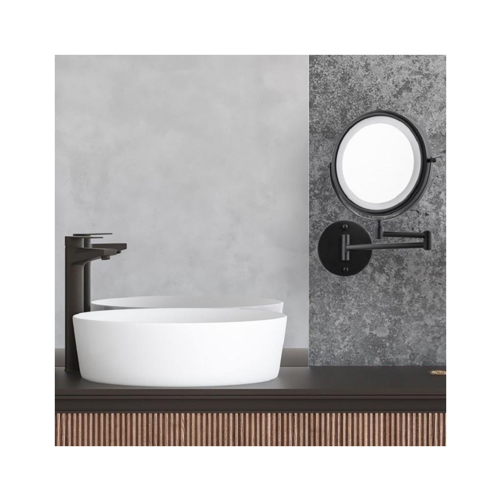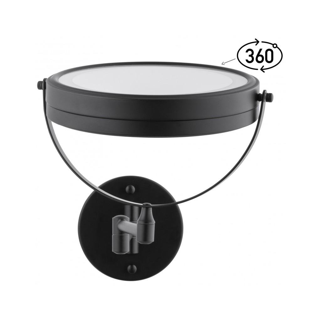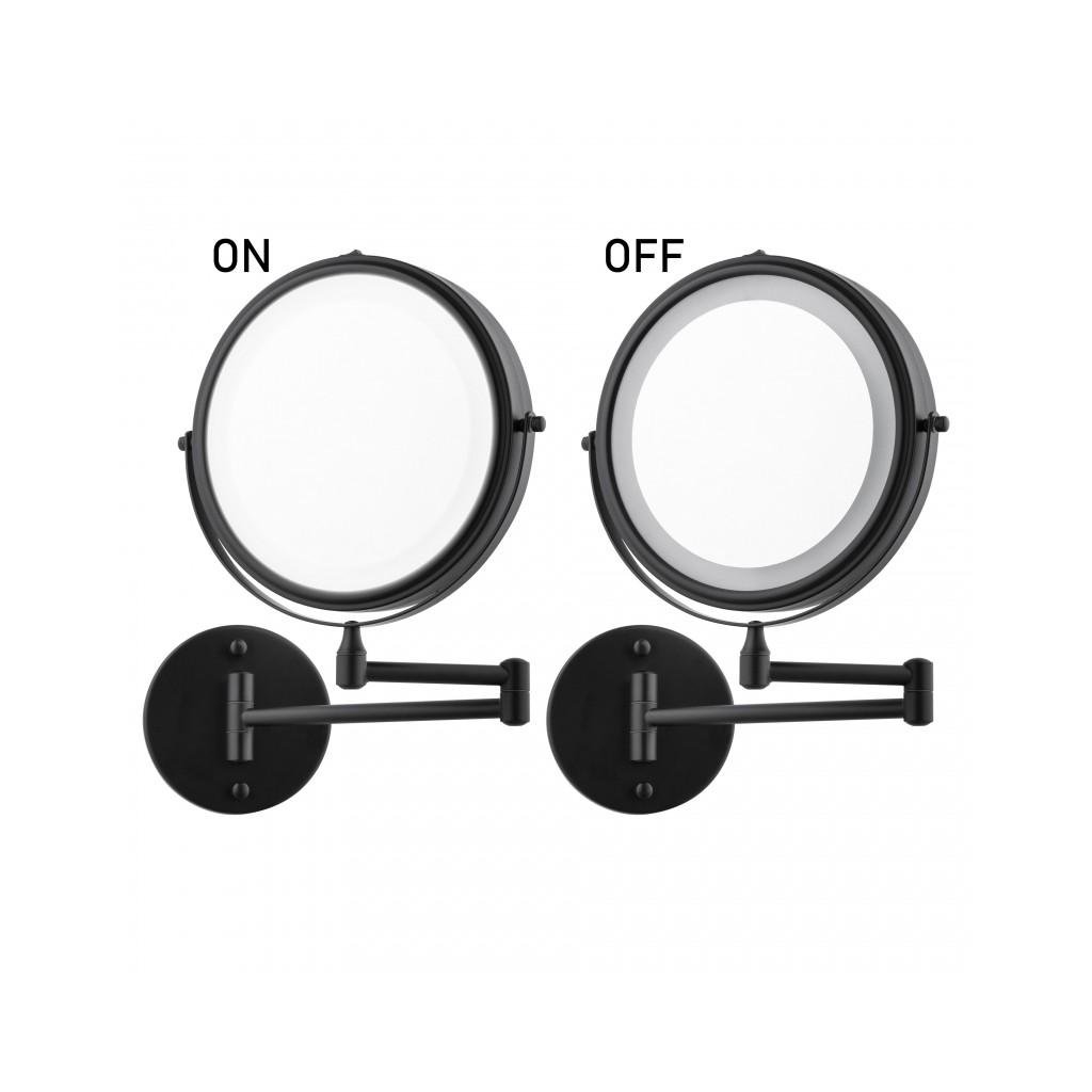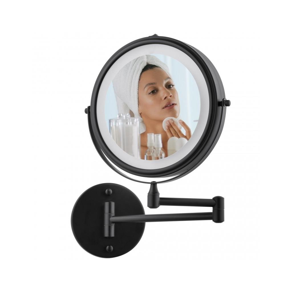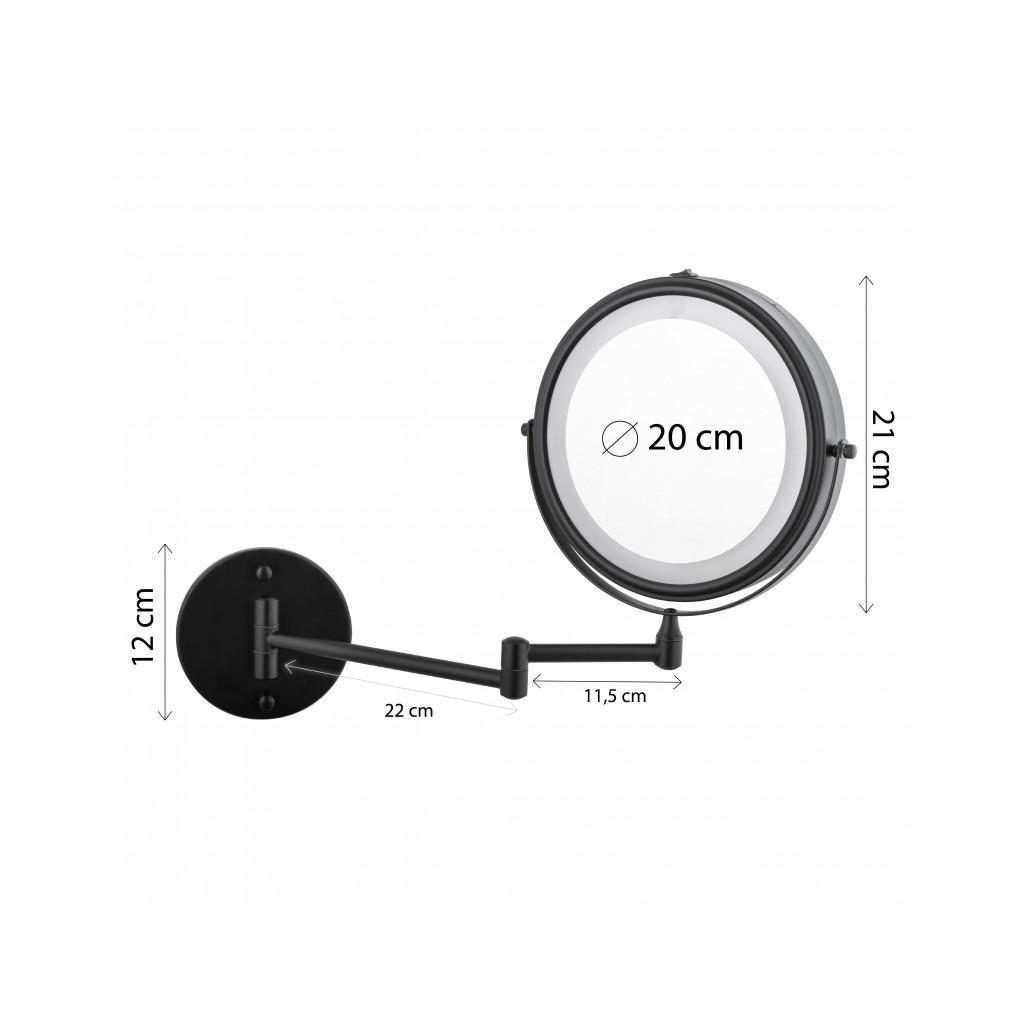 Erga Eda, LED osvětlené kosmetické zrcadlo na make-up ø20 cm, černá matná, ERG-YKA-CH.EDA-BLK