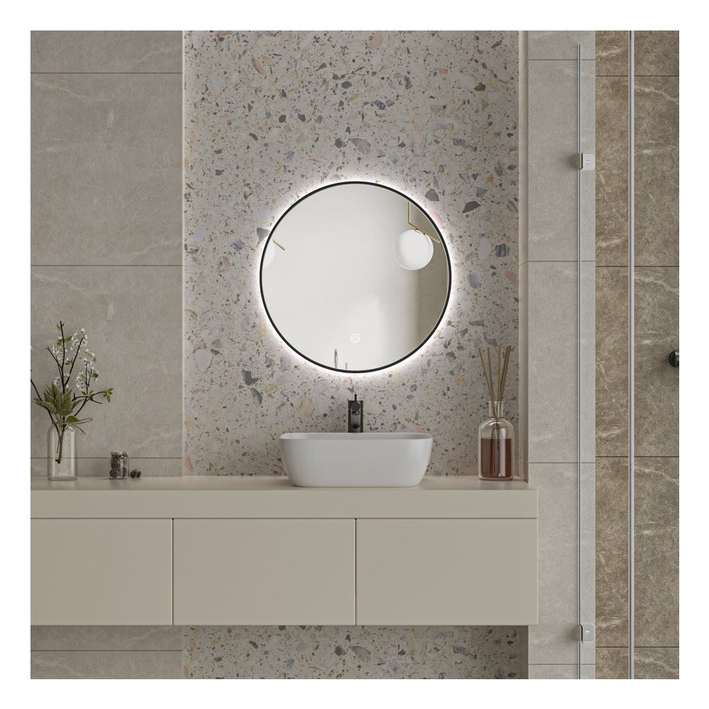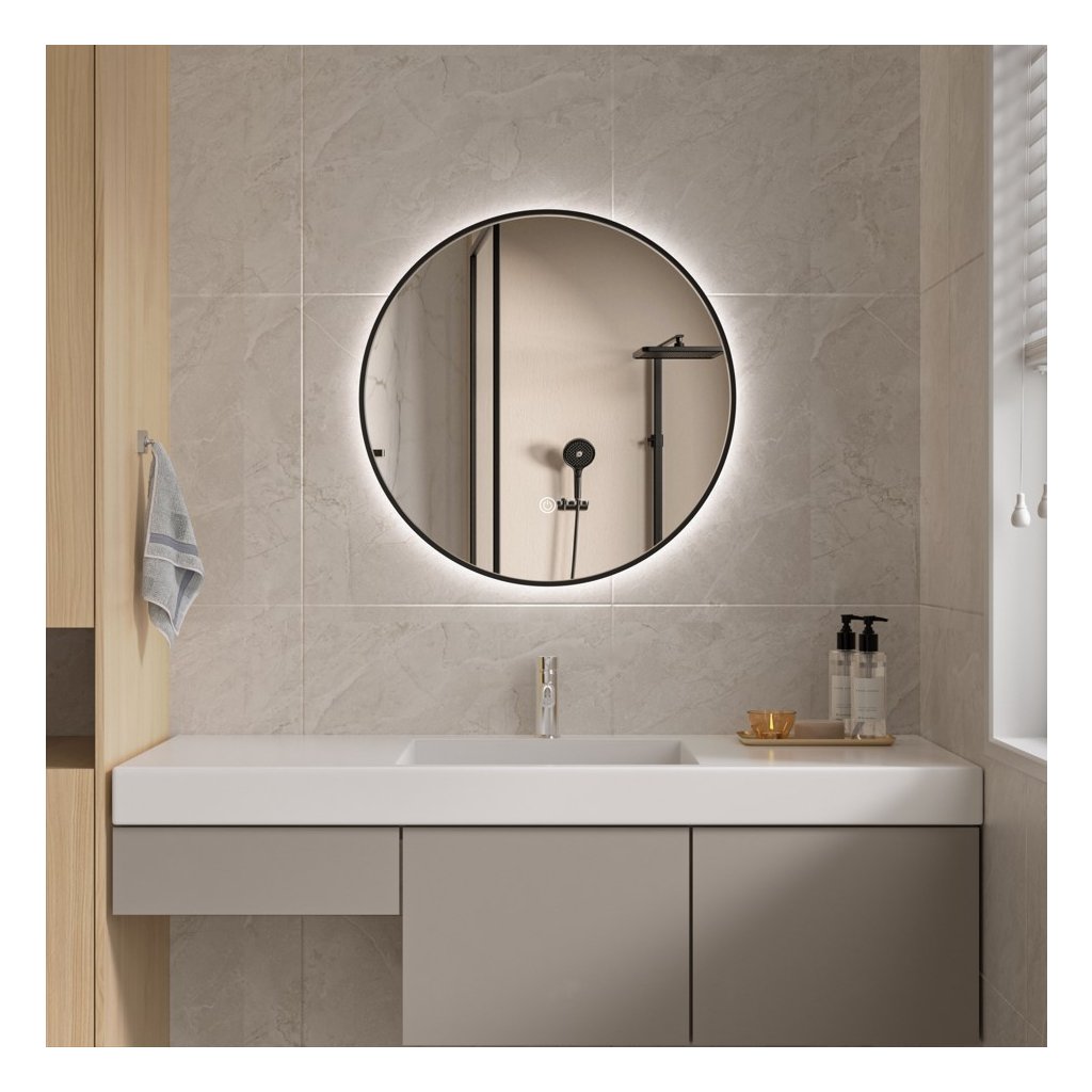 - Typ: LED zrcadlo se zadním bočním podsvícením v černém hliníkovém rámu