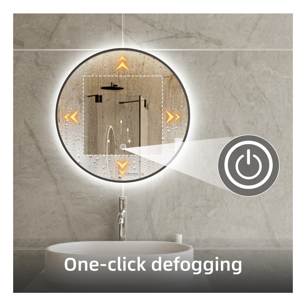 | Protiparová podložka proti zamlžování | LED zrcadlo má zabudované odmlžování. Spínač proti zamlžování má samostatné ovládání, které je bezpečné a energeticky úsporné a můžete jej zapnout nebo vypnout podle potřeby. Takže se nemusíte bát, že se při péči o pleť nebo make-up budete dívat na zrcadlo zamlžené. | |