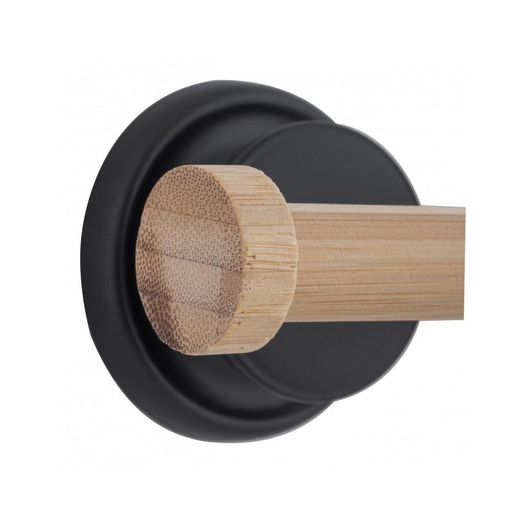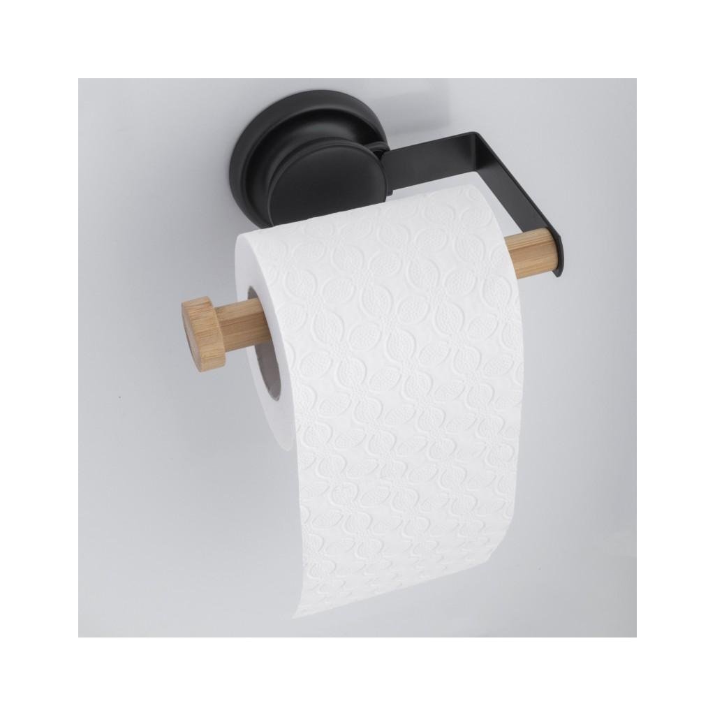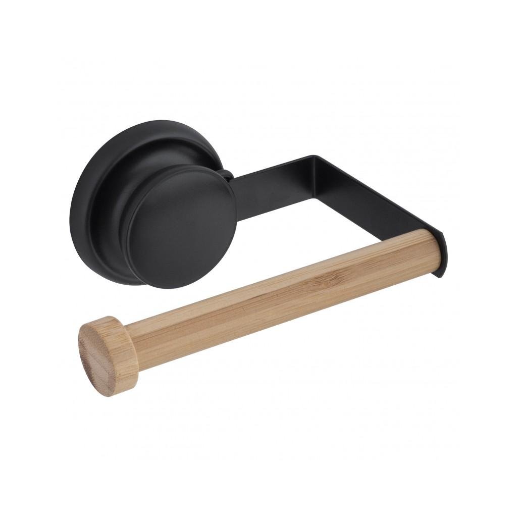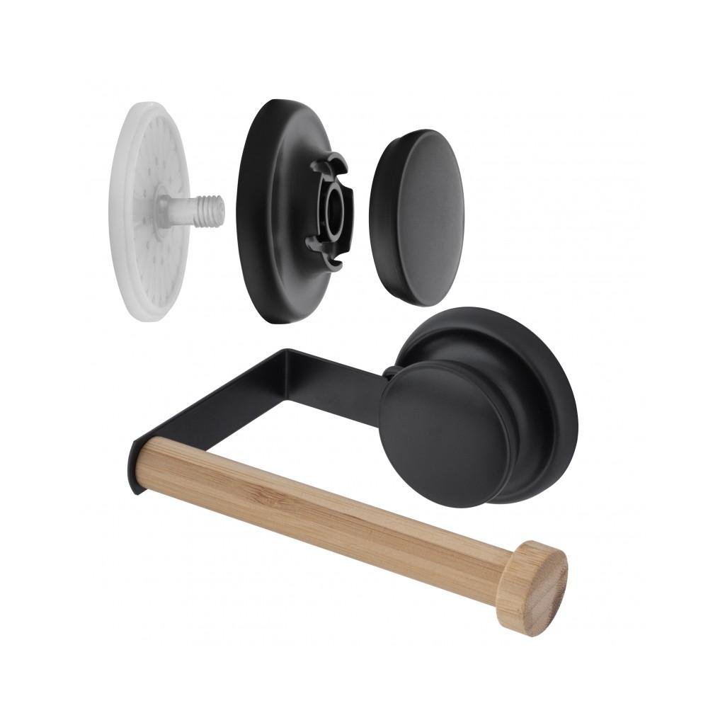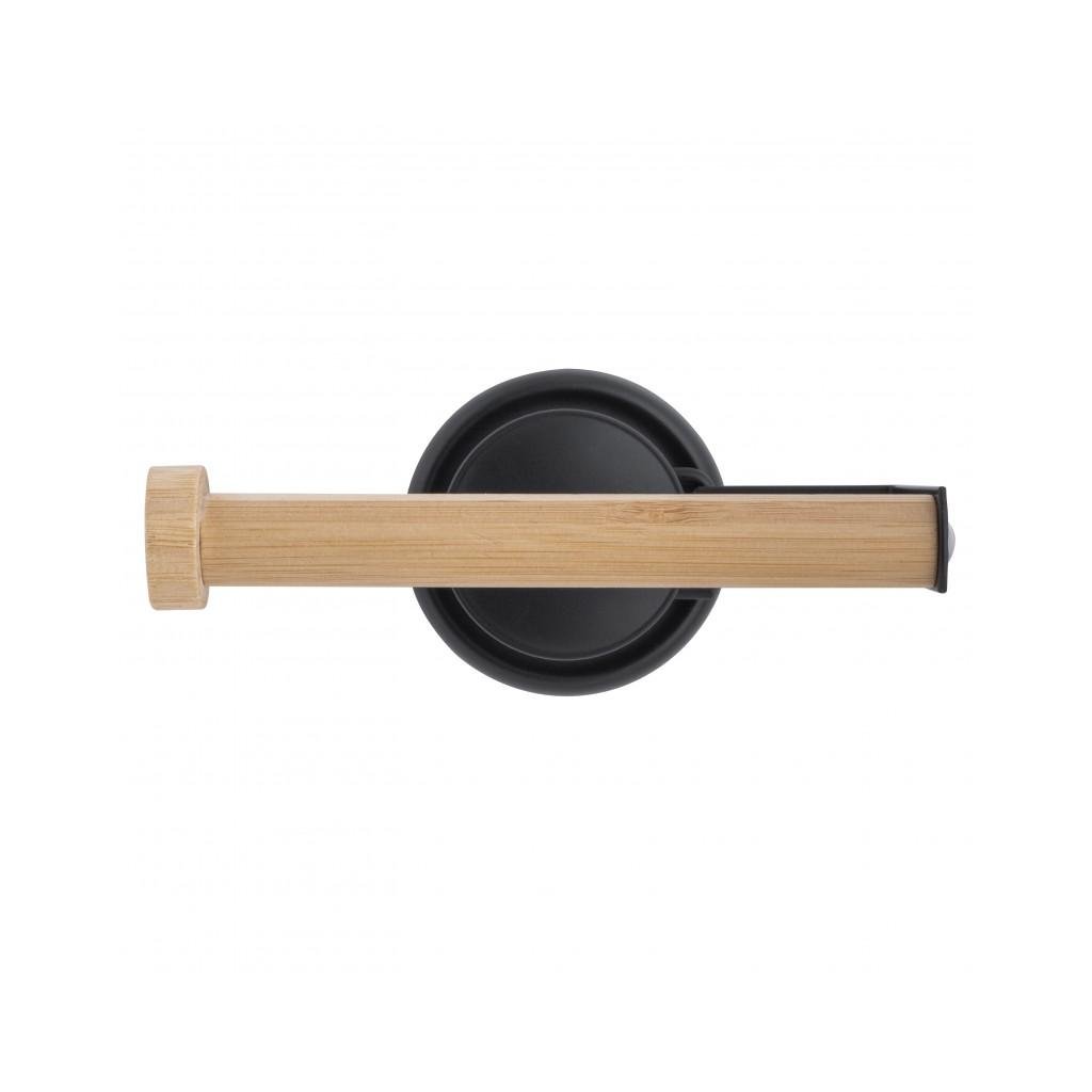 Držák toaletního papíru vyrobený z vysoce kvalitní černé lakované oceli. Dekorativní prvek z přírodního bambusového dřeva. Namontováno se silnou přísavkou. Vlastností, která odlišuje přísavku, je její účinnost na matnou porcelánovou kameninu. Jeho struktura připomíná velmi hustý gel, a tak těsně proniká do porézních povrchů. Je účinný také na dlaždice, lamináty, chladničky, sklo a jiné hladké povrchy. Zaručuje rychlou, jednoduchou a bezpečnou instalaci. Není třeba žádné vrtání ani lepení. Demontáž nezanechává žádné stopy.