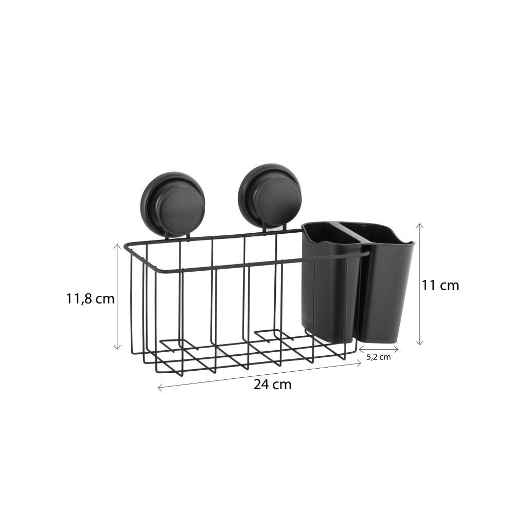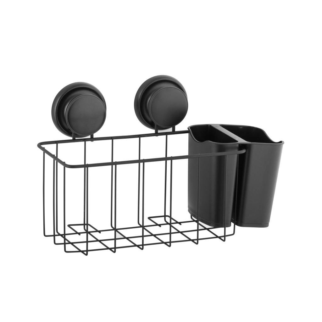 Erga Gavi, koupelnový koš na kosmetiku 30x12x19 cm na přísavky, černá matná, ERG-YKA-CH.GAVI-PP-KP-BLK