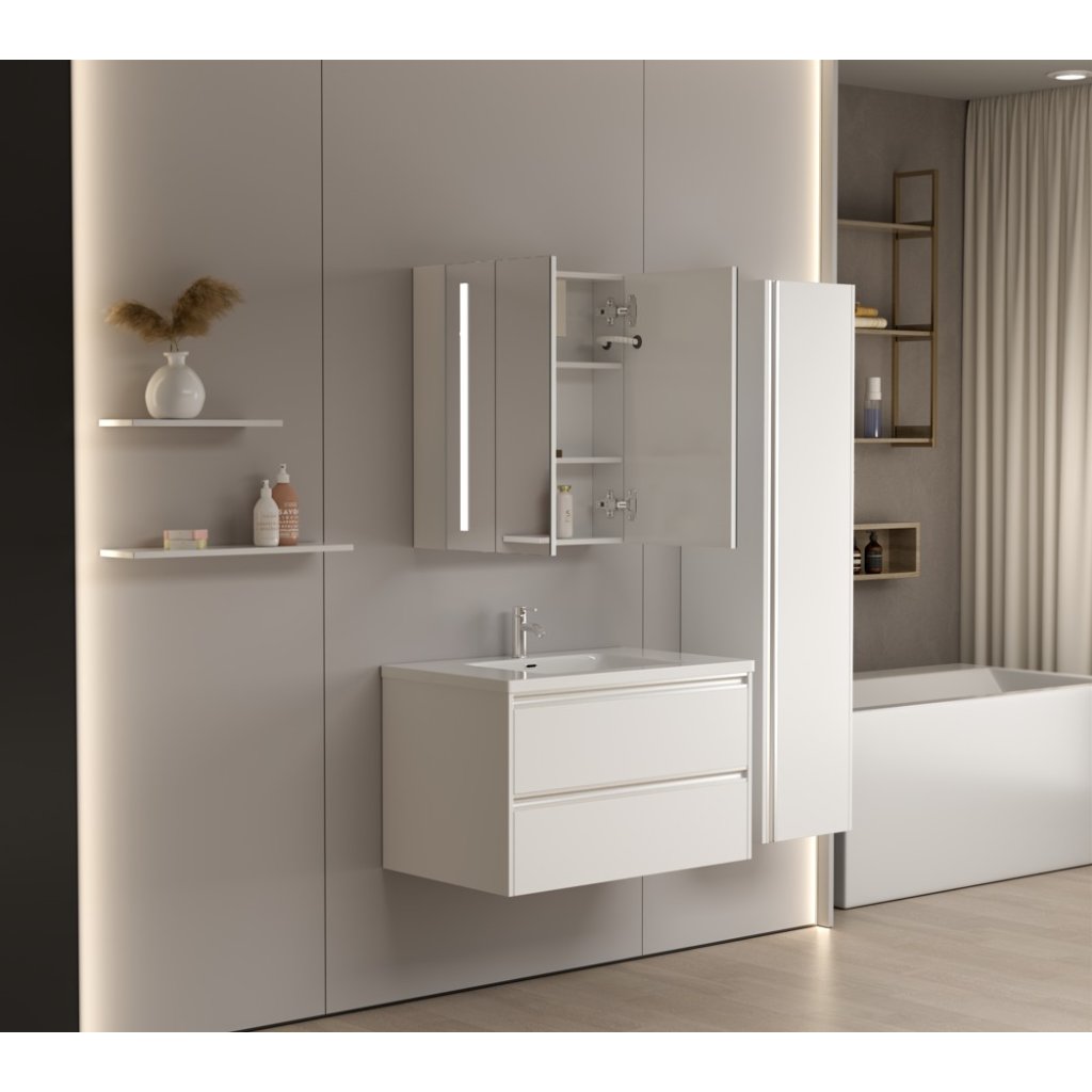 Erga Hana, zrcadlová galerka s LED osvětlením 60x70cm s integrovanou zásuvkou, bílá, ERG-V05-HANA-6070-WH