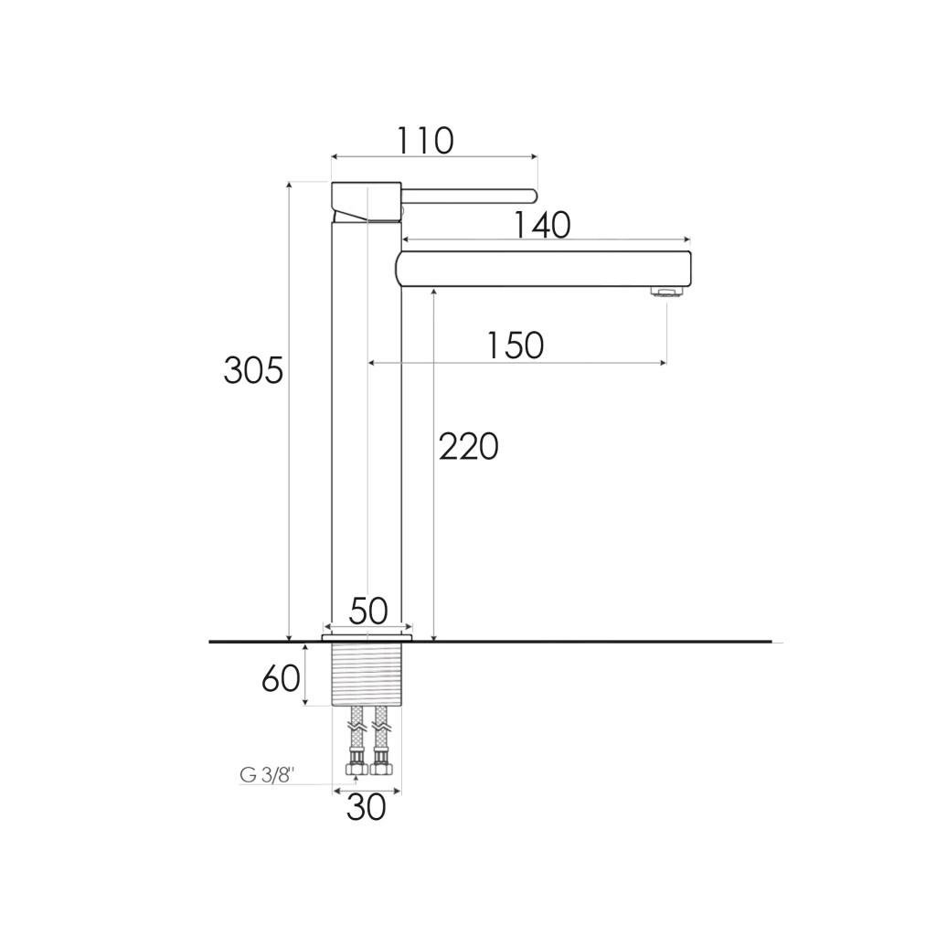 Baterie na desku, volně stojící, jednopáková. Vyznačuje se dokonale tvarovaným tvarem a povrchovou úpravou s důrazem na nejmenší detaily. Její nespornou výhodou je velmi dlouhý výtok se zabudovaným perlátorem, který ušetří až 40 % vody. Keramická hlava 25 mm zaručuje pohodlí při obsluze zařízení a umožní efektivní používání baterie. Sada obsahuje 2 kvalitní opletené nerezové hadice o délce 50 cm se standardním 3/8 palcovým připojením a sadu příslušenství pro montáž baterie. Design baterie byl podřízen nejnovějším trendům – působí velmi elegantně a dokonale se hodí do moderně zařízené koupelny.