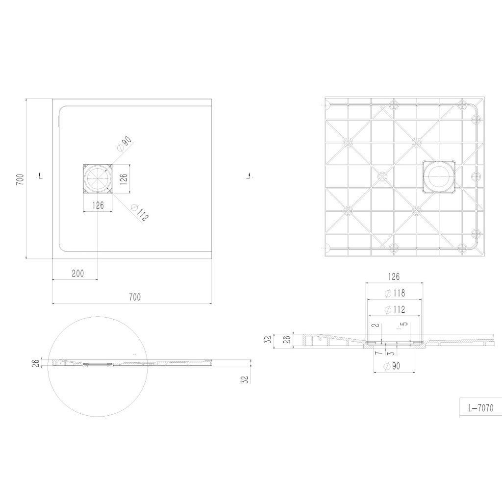 Erga Hyper, SMC sprchová vanička 70x70x2, 6 cm + sifon, bílá matná, ERG-V06-SMC-7070S-WH