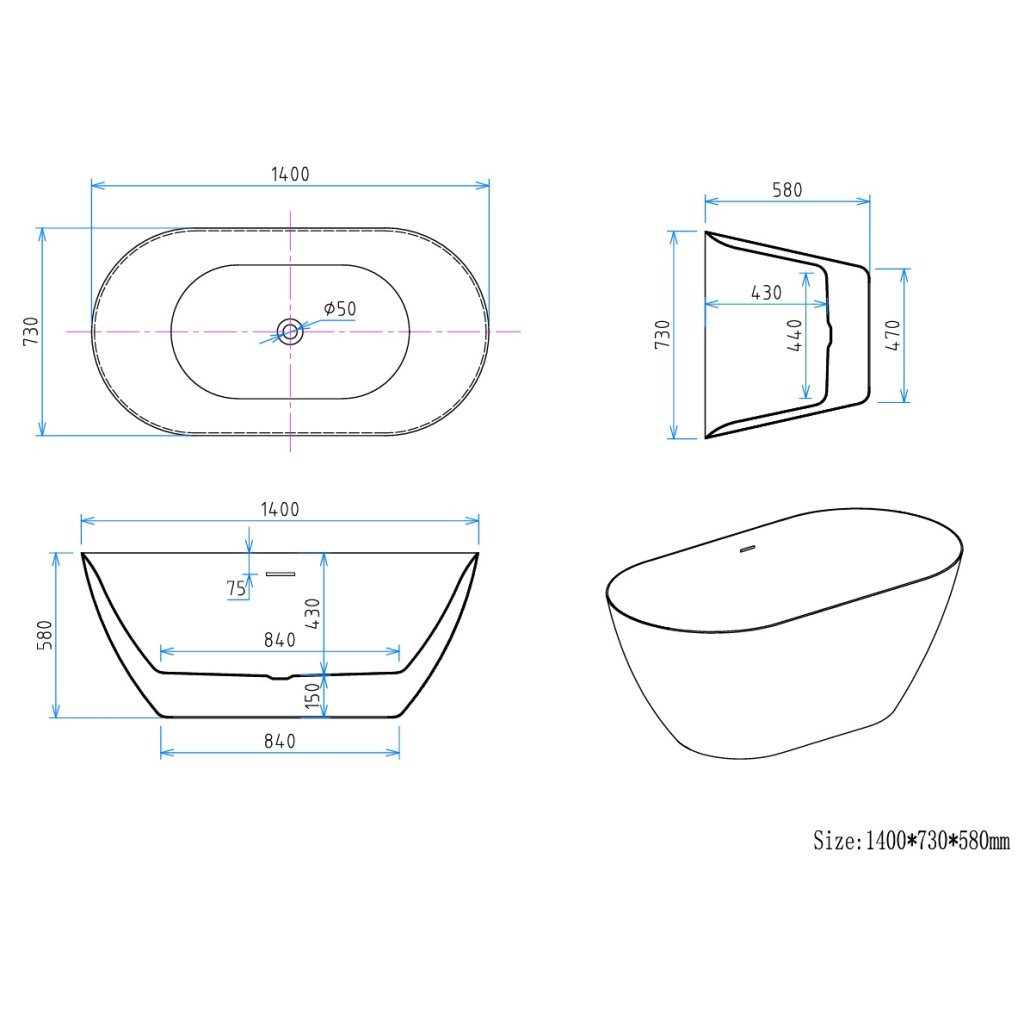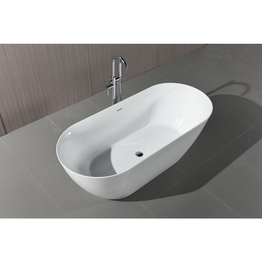 Erga Kaia, volně stojící vana 140x73 cm + odtoková zátka, bílá lesklá, ERG-Kaia-140073-WH-WH