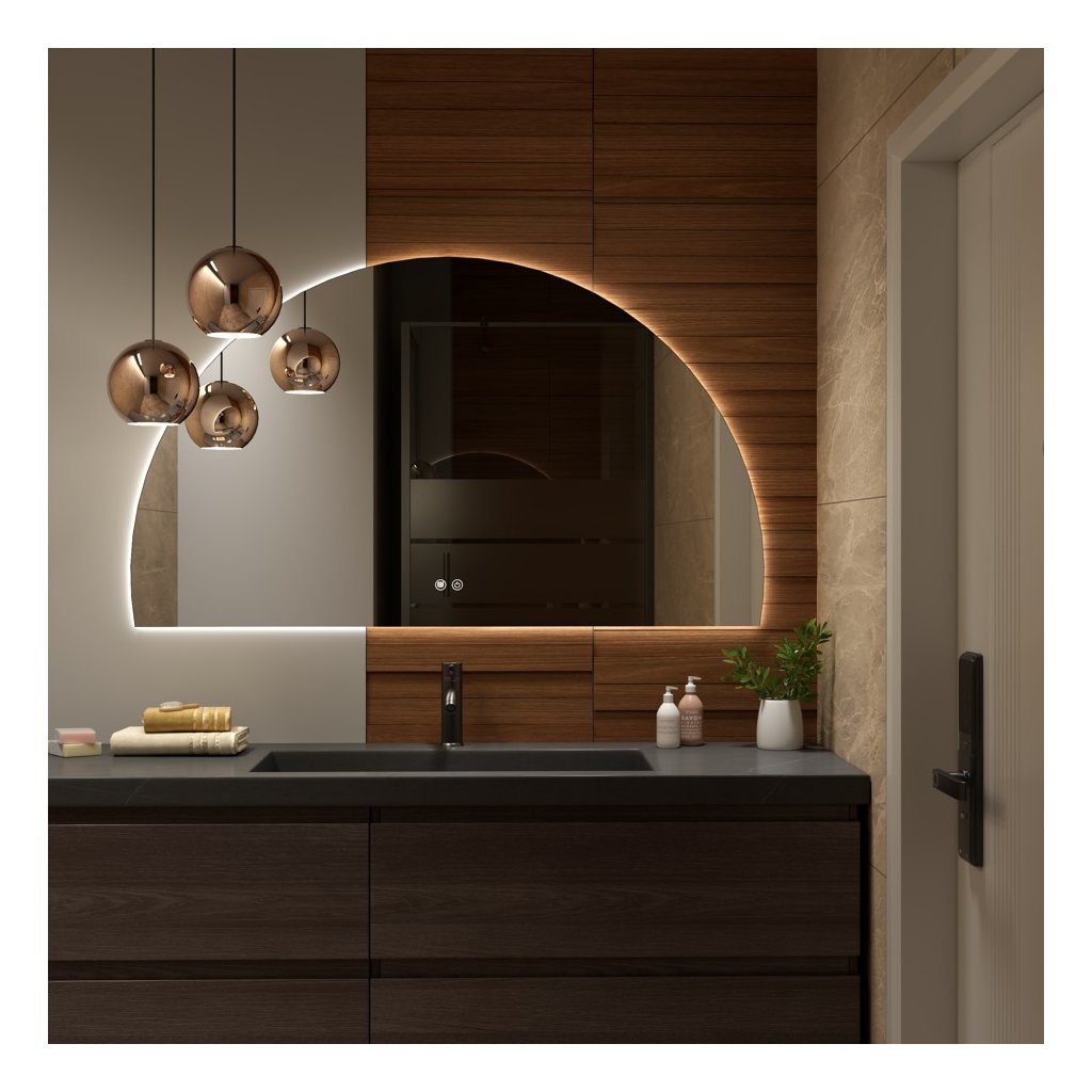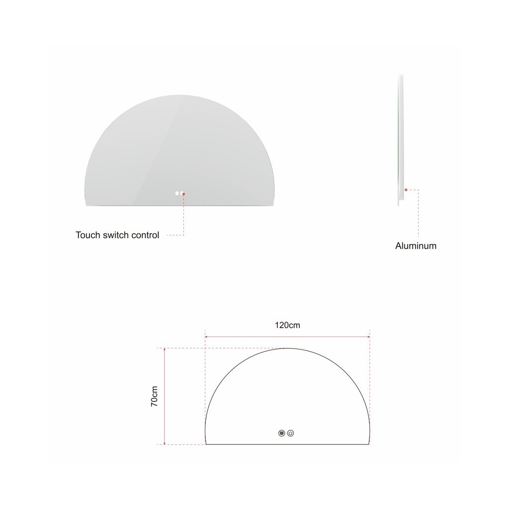 Erga Kori, půlkruhové LED zrcadlo 70x120cm, 2760 lm, 3 barvy světla, ERG-V01-KORI-7012-CL