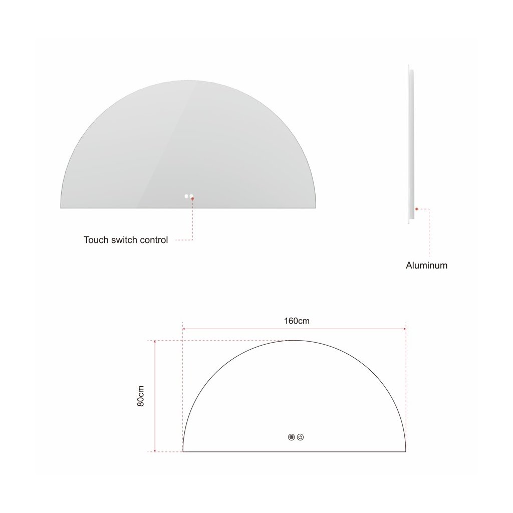 Erga Kori, půlkruhové LED zrcadlo 80x160cm, 3220 lm, 3 barvy světla, ERG-V01-KORI-8016-CL