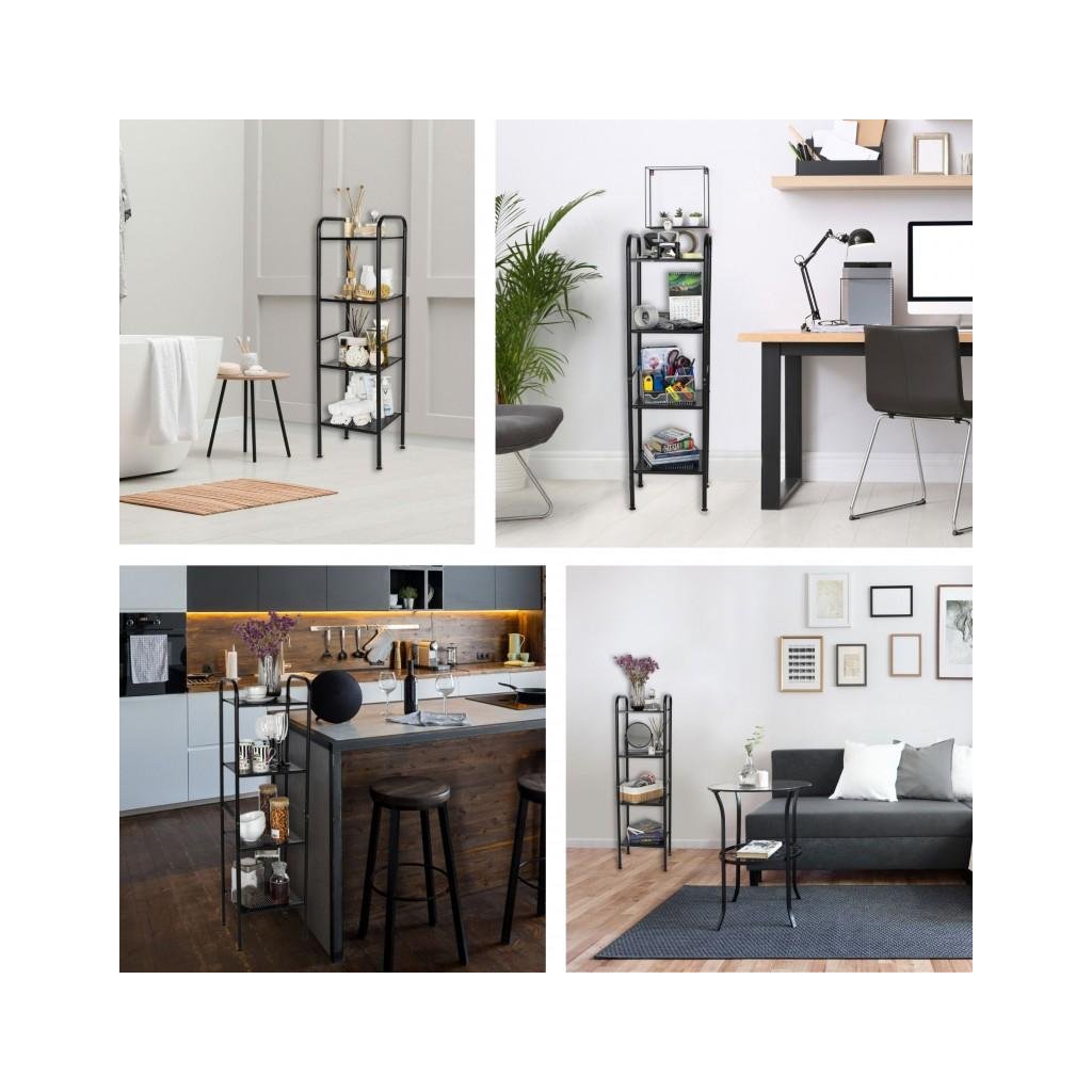 Erga Lexa, koupelnový kovový regál se 4 policemi 28x33x114,5 cm, černá matná, ERG-YKA-P.LEXA-4-BLK