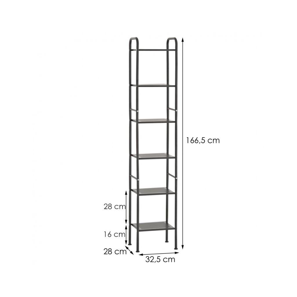 Erga Lexa, koupelnový kovový regál se 6 policemi 28x32,5x166,5 cm, černá matná, ERG-YKA-P.LEXA-BLK