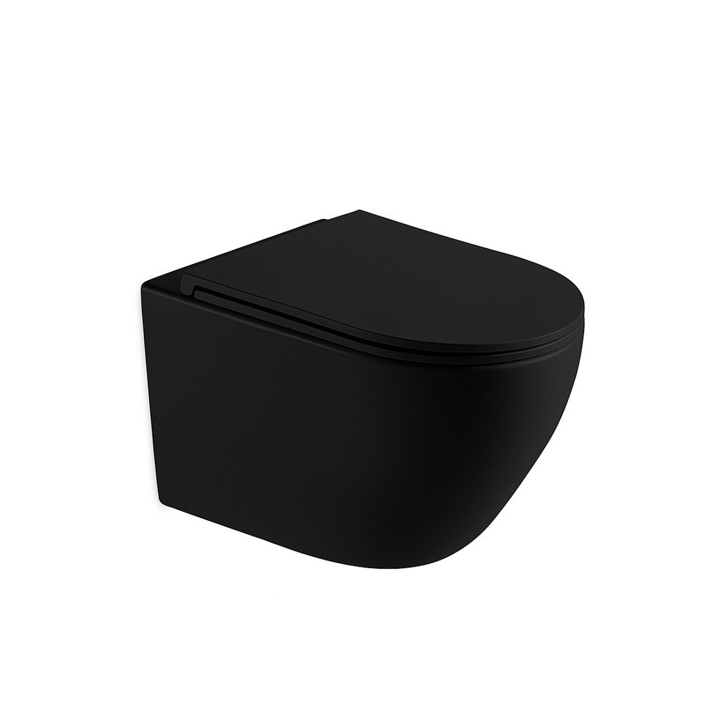 Erga Lily+, závěsná WC mísa 490x370x365mm, Rimless Tornado 2 + toaletní sedátko s pomalým zavíráním, černá matná, ERG-V03-LILY-TO2-BK