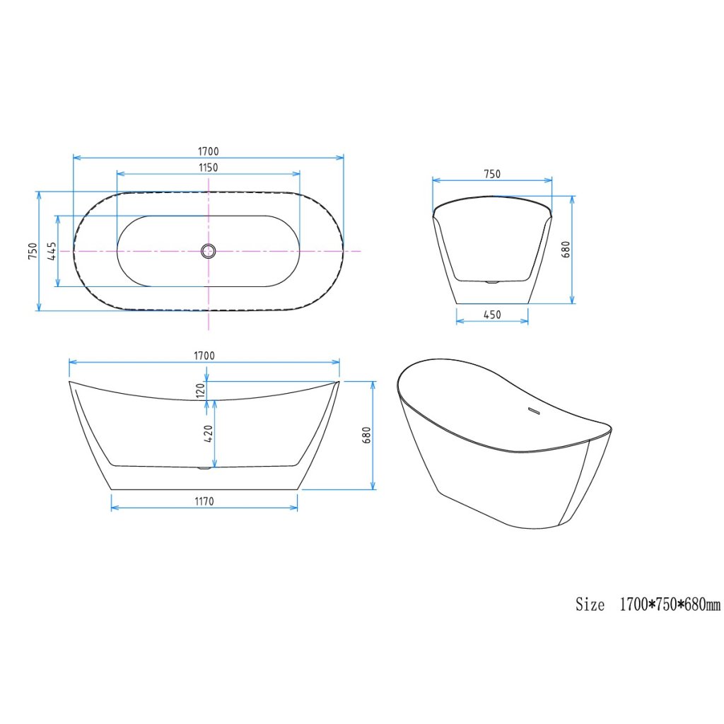 - Typ: volně stojící vana
