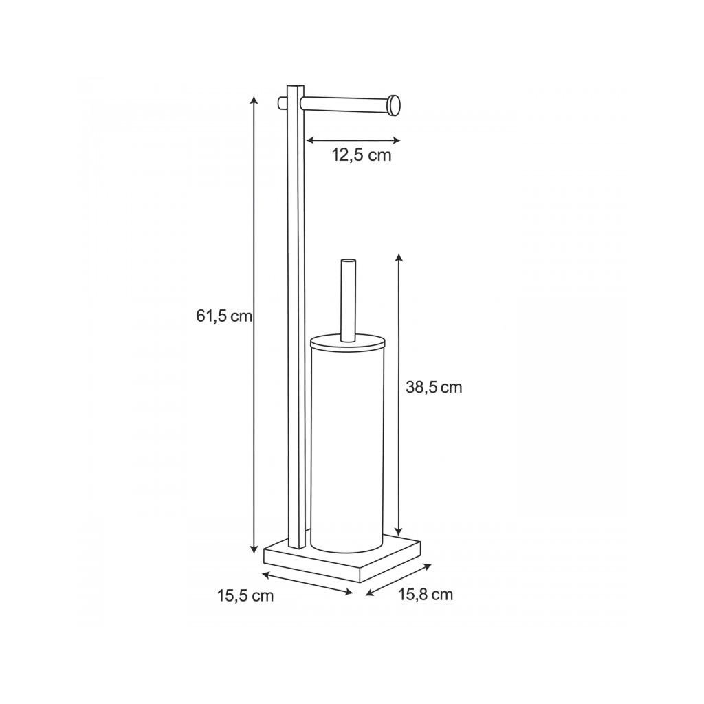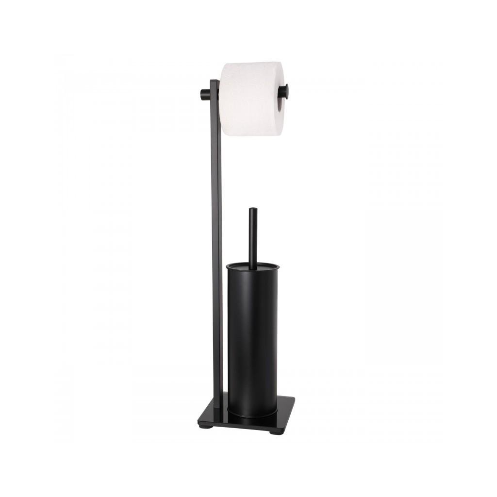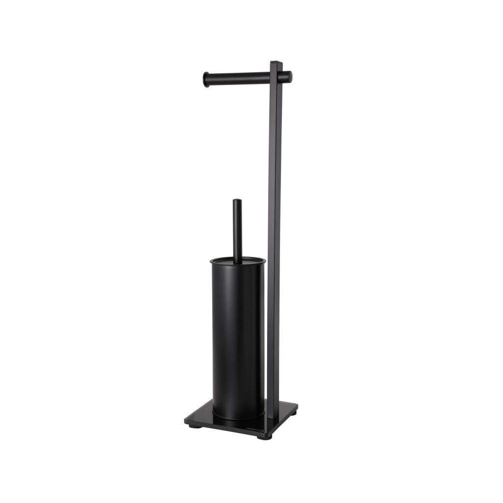 Volně stojící toaletní kartáč s integrovaným držákem toaletního papíru. Stojan je vyroben z kvalitní oceli lakované černou barvou. Kartáč má ochrannou plastovou nádobu, která chrání před rzí a usnadňuje její čištění. Široká základna, ukončená rámem z černé oceli, poskytuje vynikající stabilitu.