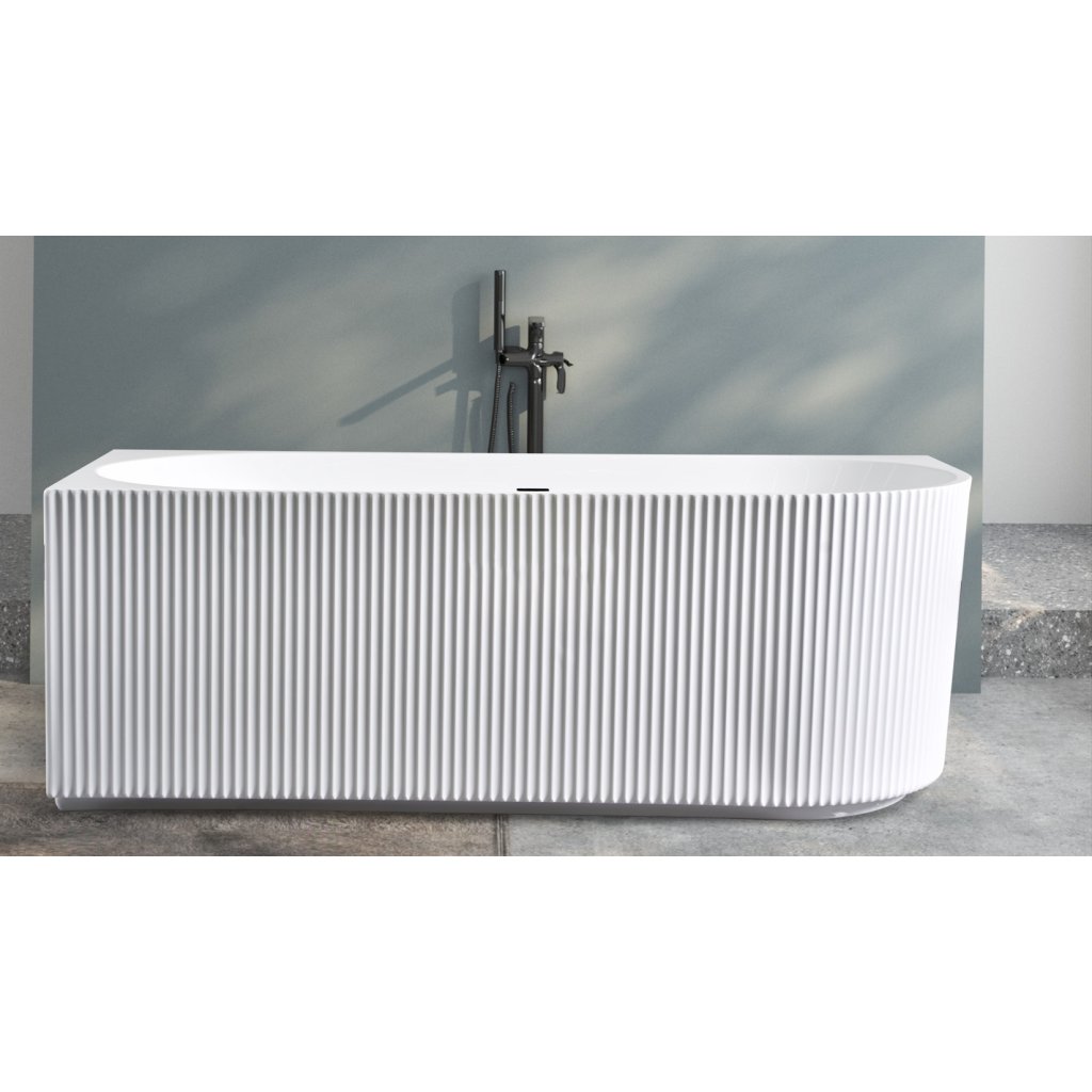 poznámka: ilustrační fotky, nabízený produkt se prodává s bílou lesklou odtokovou zátkou typ ClickClack v barvě vany a vyfrézovaným designovým přepadovým otvorem pro snadné doladění koupelnových prvků. Bílou odtokovou zátku lze vyměnit za jinou barvu pro sladění s baterií nebo jinými koupelnovými doplňky (viz související produkty).