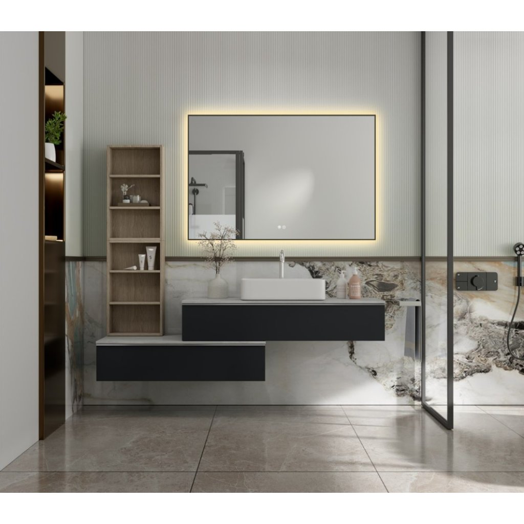 Erga Megan, LED zrcadlo 50x70cm v černém rámu, 1840 lm, 3 barvy světla, zadní osvětlení, ERG-V01-MEGAN-5070-BK