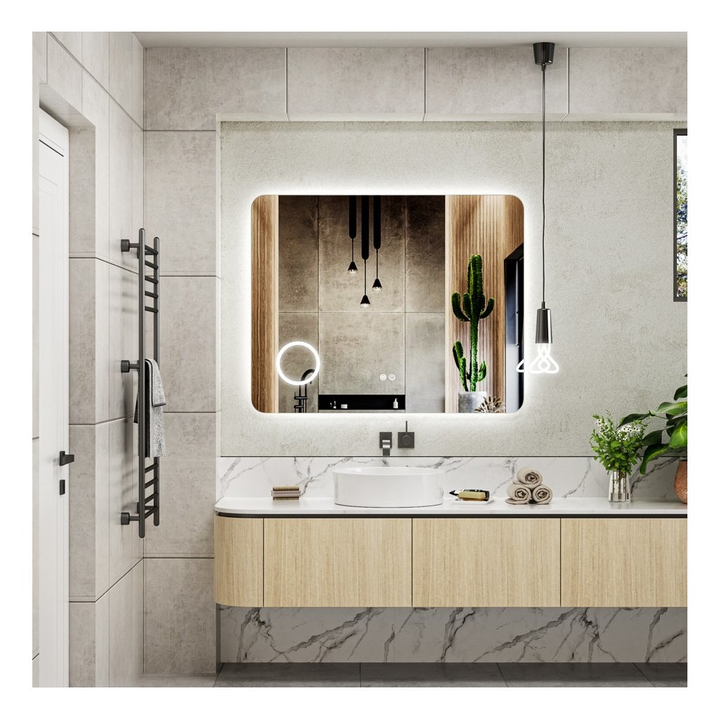 Erga Myra, LED zrcadlo 100x80 cm s kosmetickým zrcadlem 3x zvětšení, 4114 lm, 3 barvy světla, zadní osvětlení, ERG-V01-MYRA-1080-00
