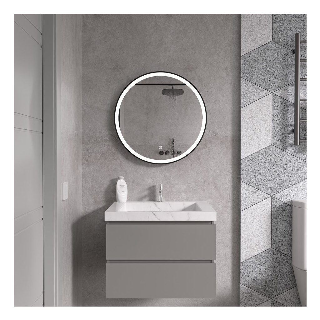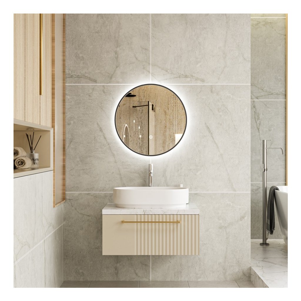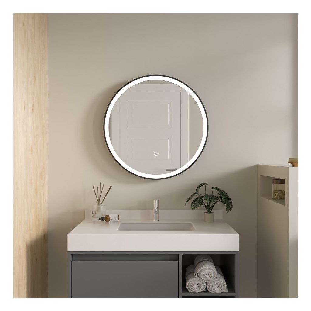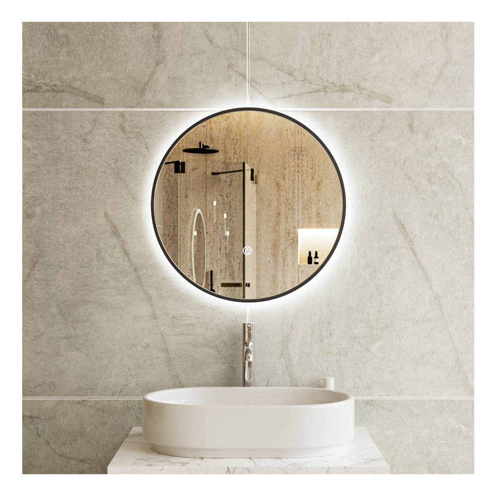 - Typ: LED zrcadlo s předním osvětlením v černém hliníkovém rámu
