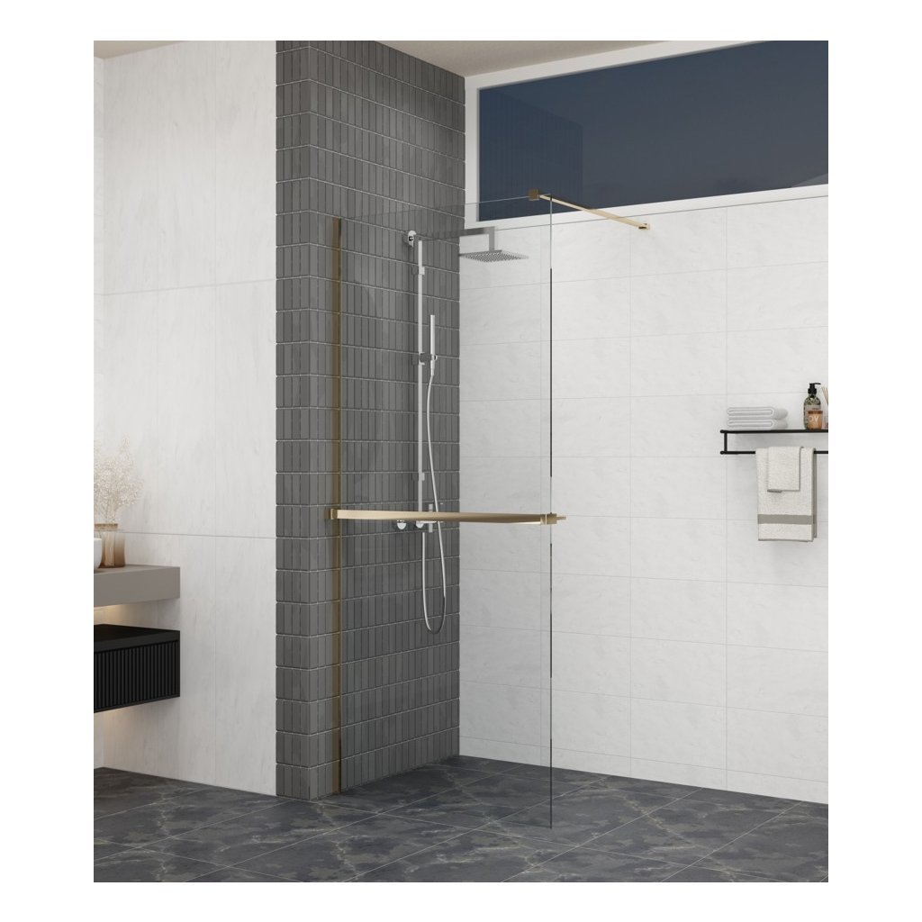 Erga Paris, sprchová zástěna Walk-In 100x200 cm, 8mm čiré/mléčné sklo, zlatý lesklý profil, ERG-V02-PARIS-100x200-MF-GD