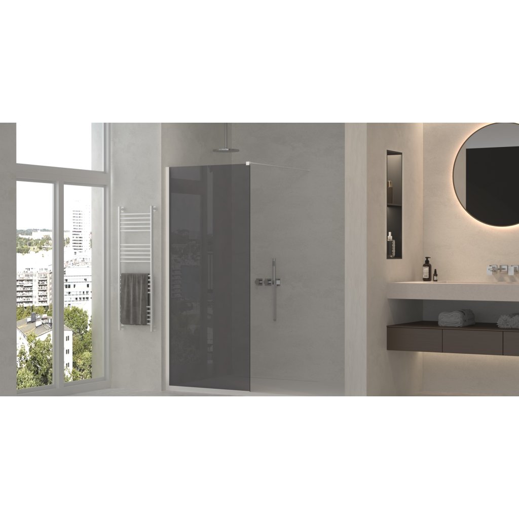Erga Paris, sprchová zástěna Walk-In 100x200 cm, 8mm šedé sklo, bílý matný profil, ERG-V02-PARIS-100x200-GR-WH