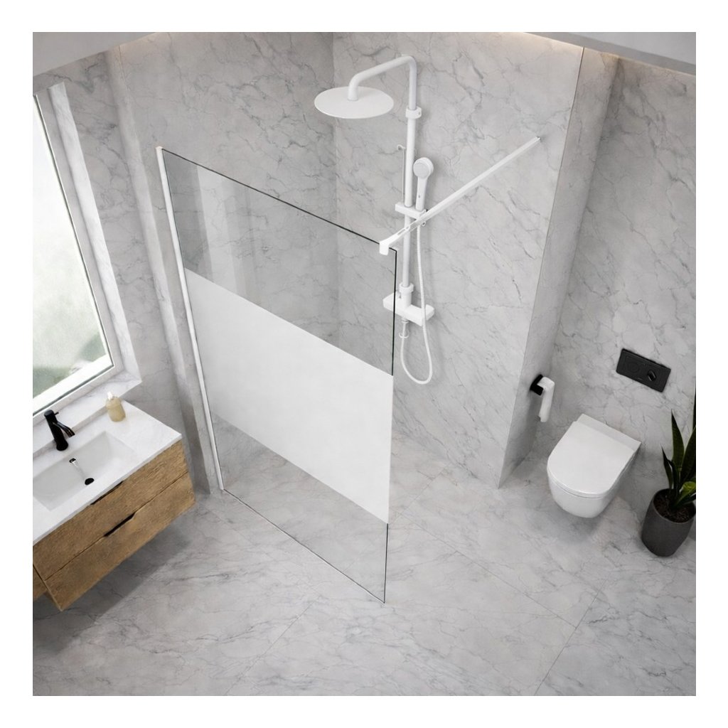 Erga Paris, sprchová zástěna Walk-In 120x200 cm, 8mm čiré/mléčné sklo, bílý matný profil, ERG-V02-PARIS-120x200-MF-WH