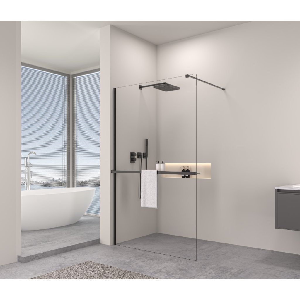 Erga Paris, sprchová zástěna Walk-In 130x200 cm, 8mm čiré sklo, černý profil, ERG-V02-PARIS-130x200-CL-BK
