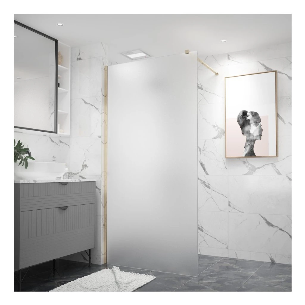 Erga Paris, sprchová zástěna Walk-In 130x200 cm, 8mm sklo námraza, zlatý lesklý profil, ERG-V02-PARIS-130x200-FR-GD