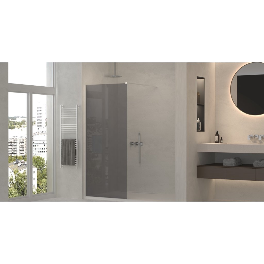 Erga Paris, sprchová zástěna Walk-In 140x200 cm, 8mm šedé sklo, chromový profil, ERG-V02-PARIS-140x200-GR-CR