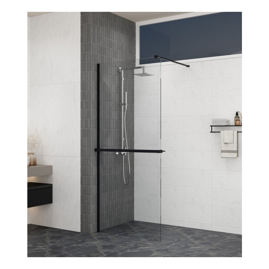 Erga Paris, sprchová zástěna Walk-In 30x200 cm, 8mm čiré sklo, černý profil, ERG-V02-PARIS-030x200-CL-BK