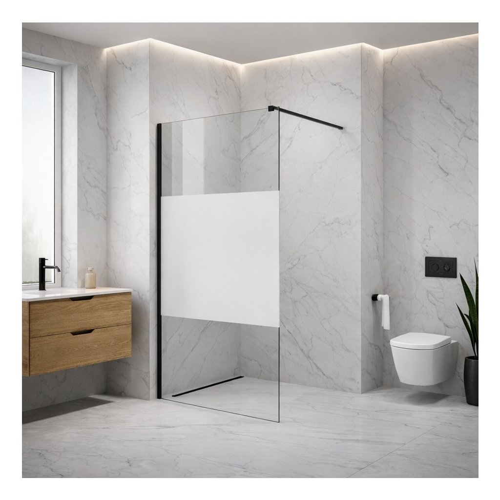 Erga Paris, sprchová zástěna Walk-In 60x200 cm, 8mm čiré/mléčné sklo, černý profil, ERG-V02-PARIS-060x200-MF-BK