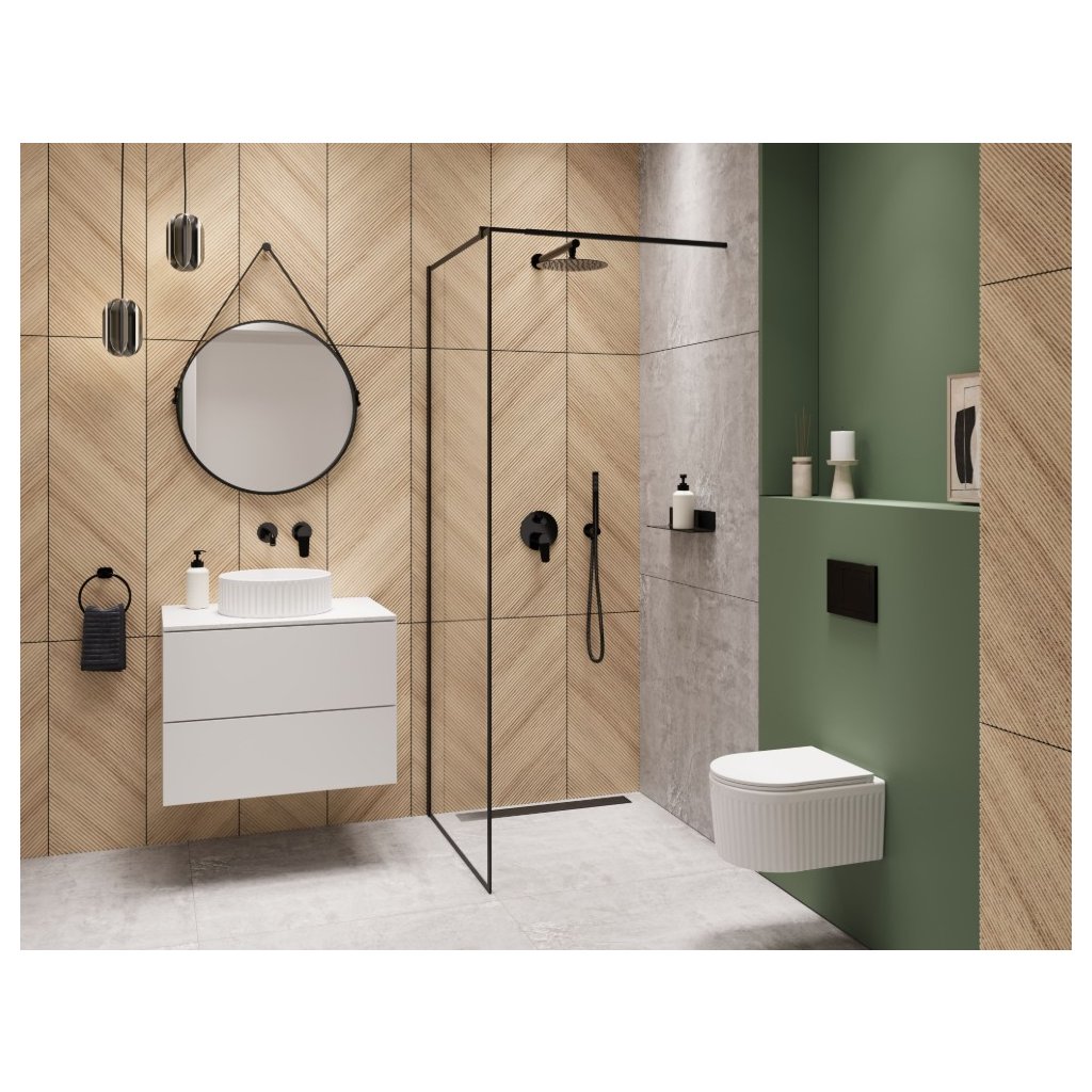- Typ: sprchová zástěna WALK-IN v černém kovovém rámu.