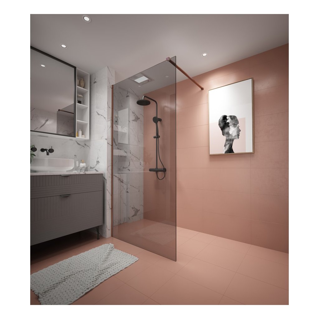 Erga Paris, sprchová zástěna Walk-In 70x200 cm, 8mm šedé sklo, měděný matný profil, ERG-V02-PARIS-070x200-GR-CO