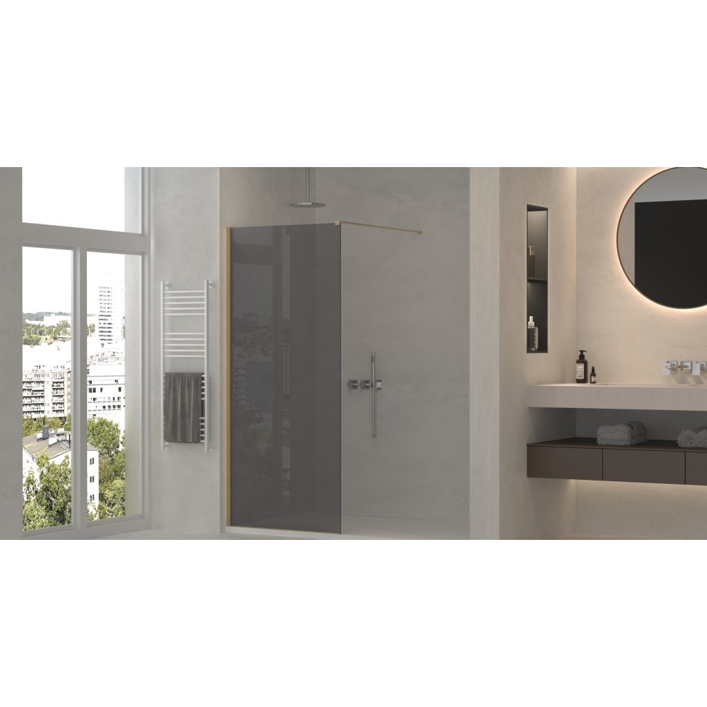 Erga Paris, sprchová zástěna Walk-In 70x200 cm, 8mm šedé sklo, zlatý matný profil, ERG-V02-PARIS-070x200-GR-GB