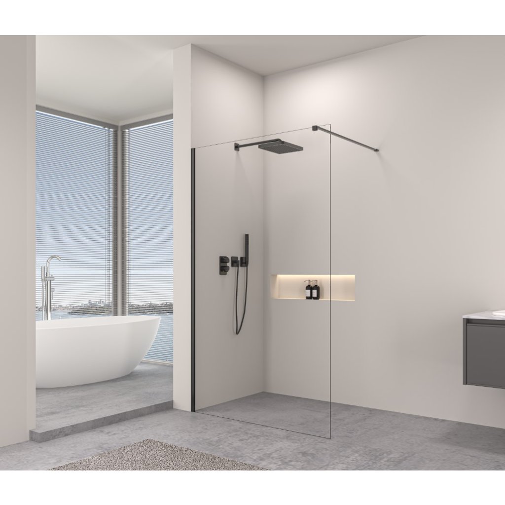 Erga Paris, sprchová zástěna Walk-In 80x200 cm, 8mm čiré sklo, černý profil, ERG-V02-PARIS-080x200-CL-BK