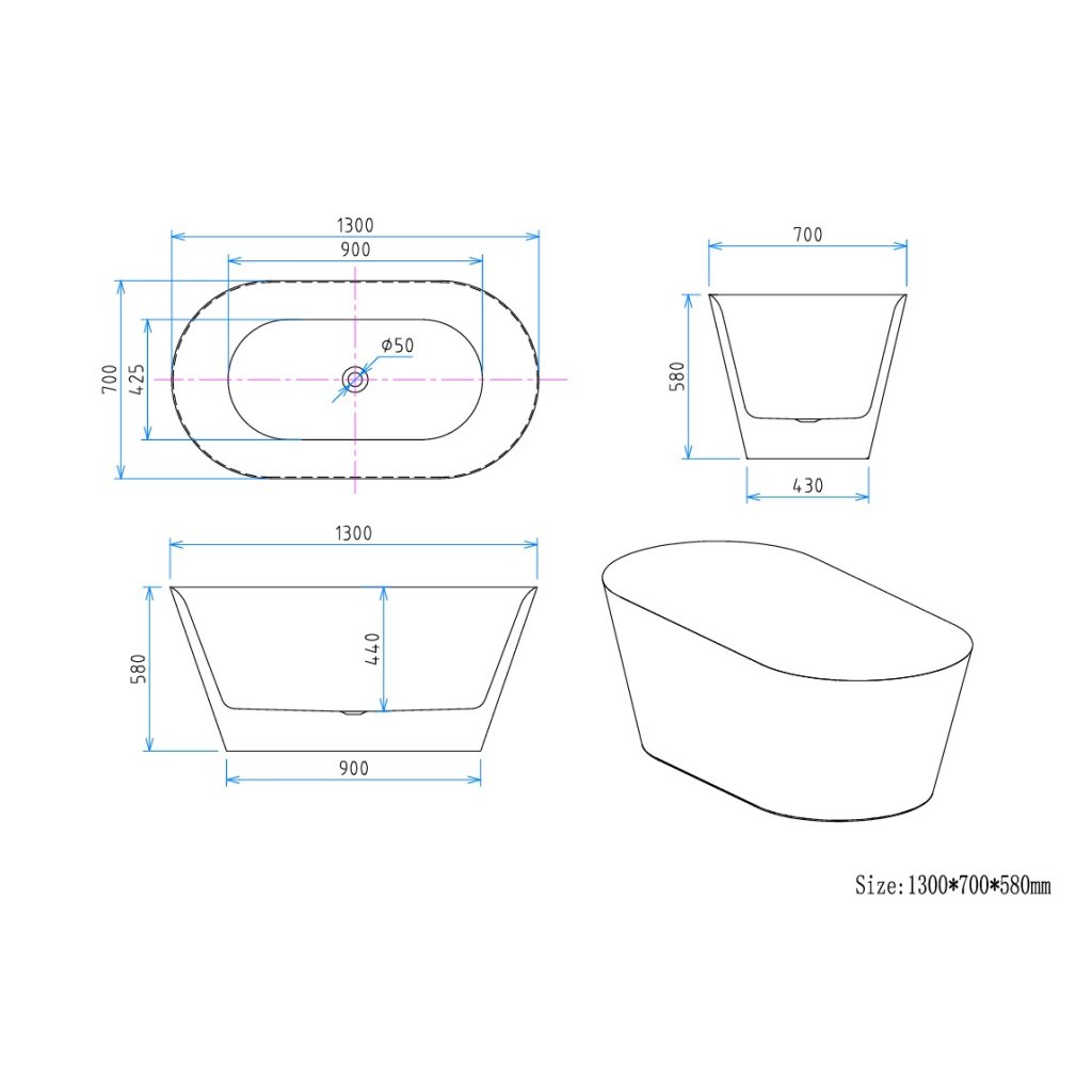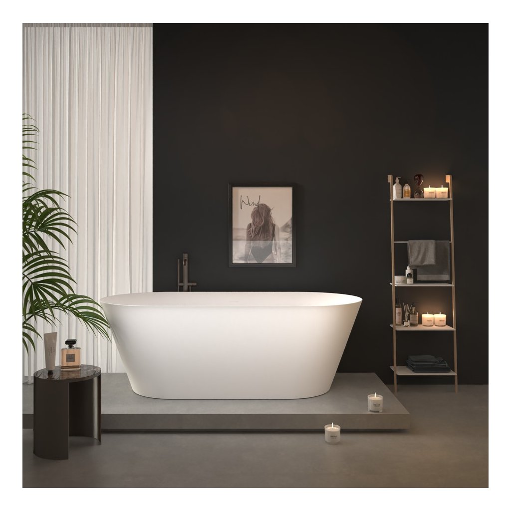 Erga Rhea, volně stojící vana 130x70 cm + odtoková zátka, bílá lesklá, ERG-RHEA-130070-WH-WH